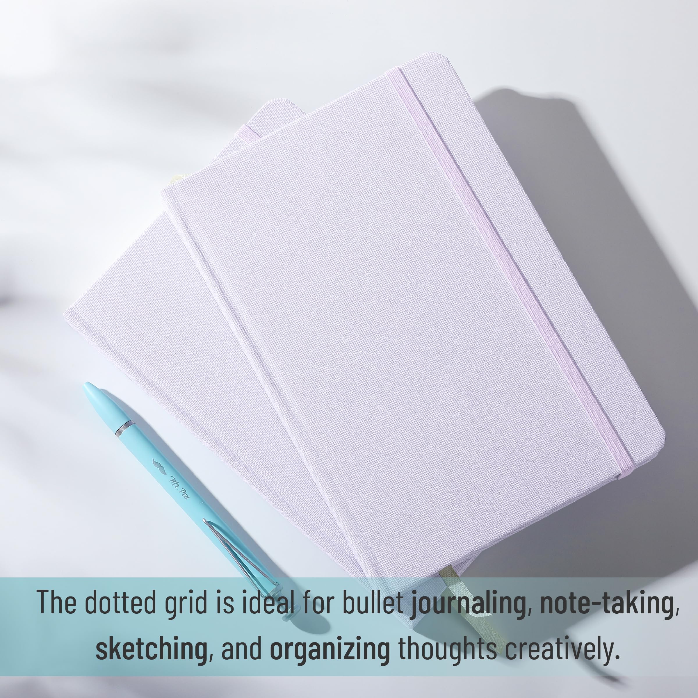 Mr. Pen dotted journal notebook comes with a sleek gray fabric hardcover, combining durability and a modern look, making it perfect for daily use or as a gift.