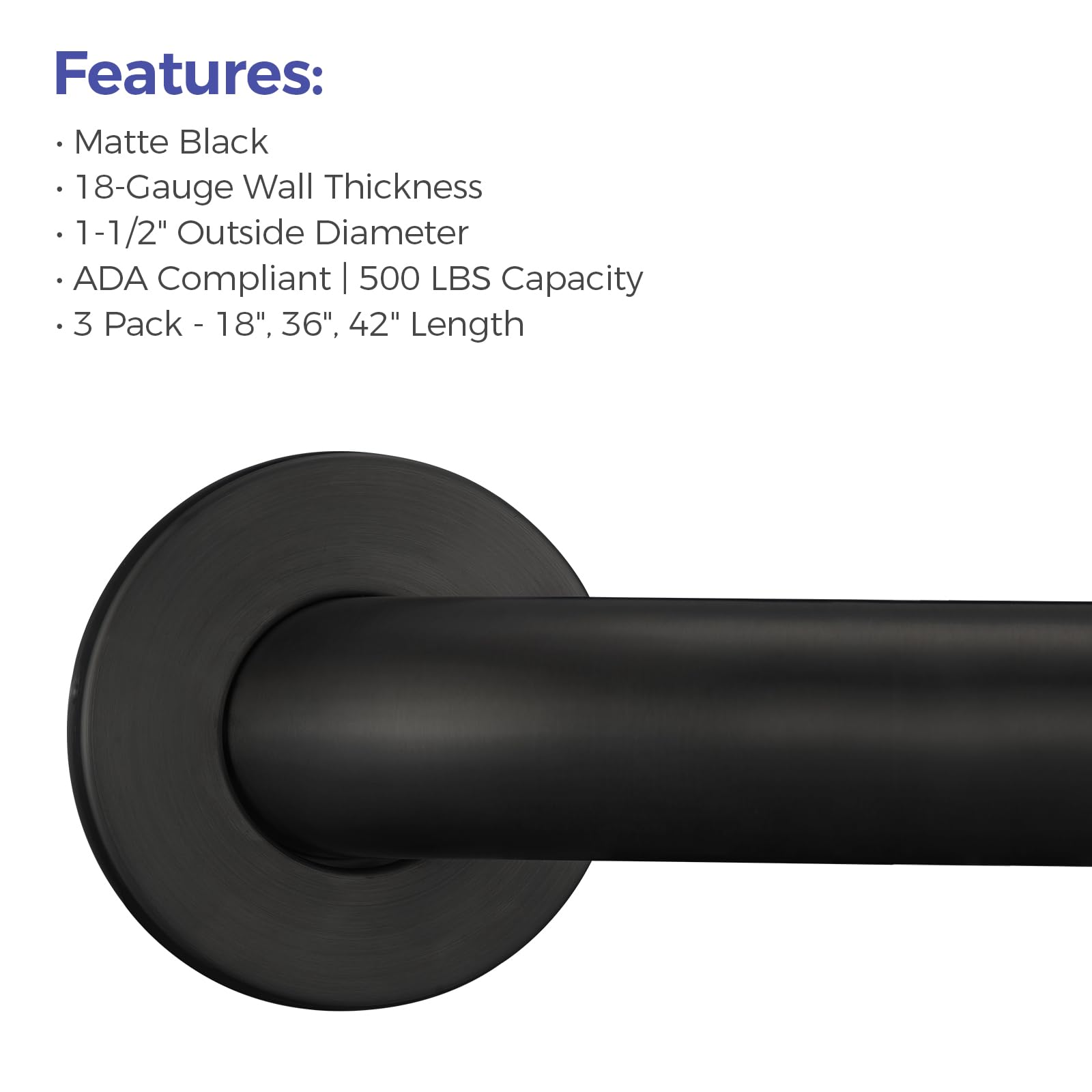Pack of 3 Grab Bars - Includes 18", 36", and 42" length grab bars. A great addition to any handicap stall, public restroom, or hotel shower.
