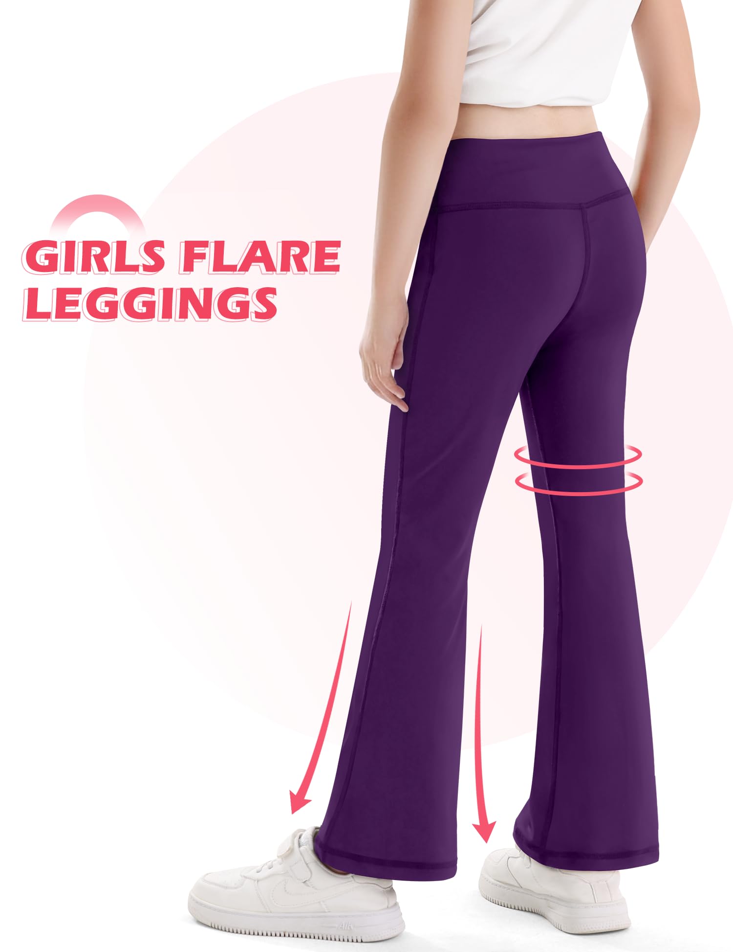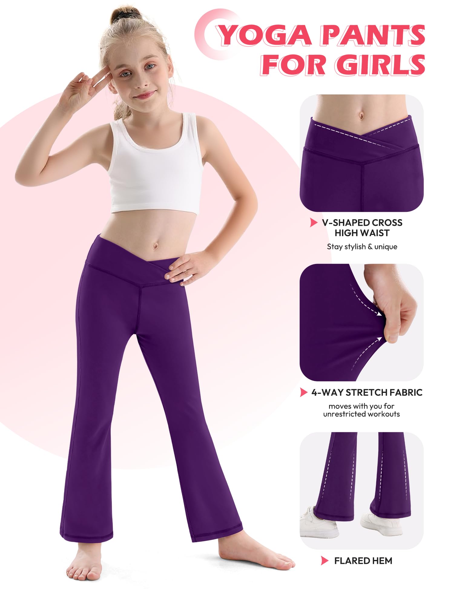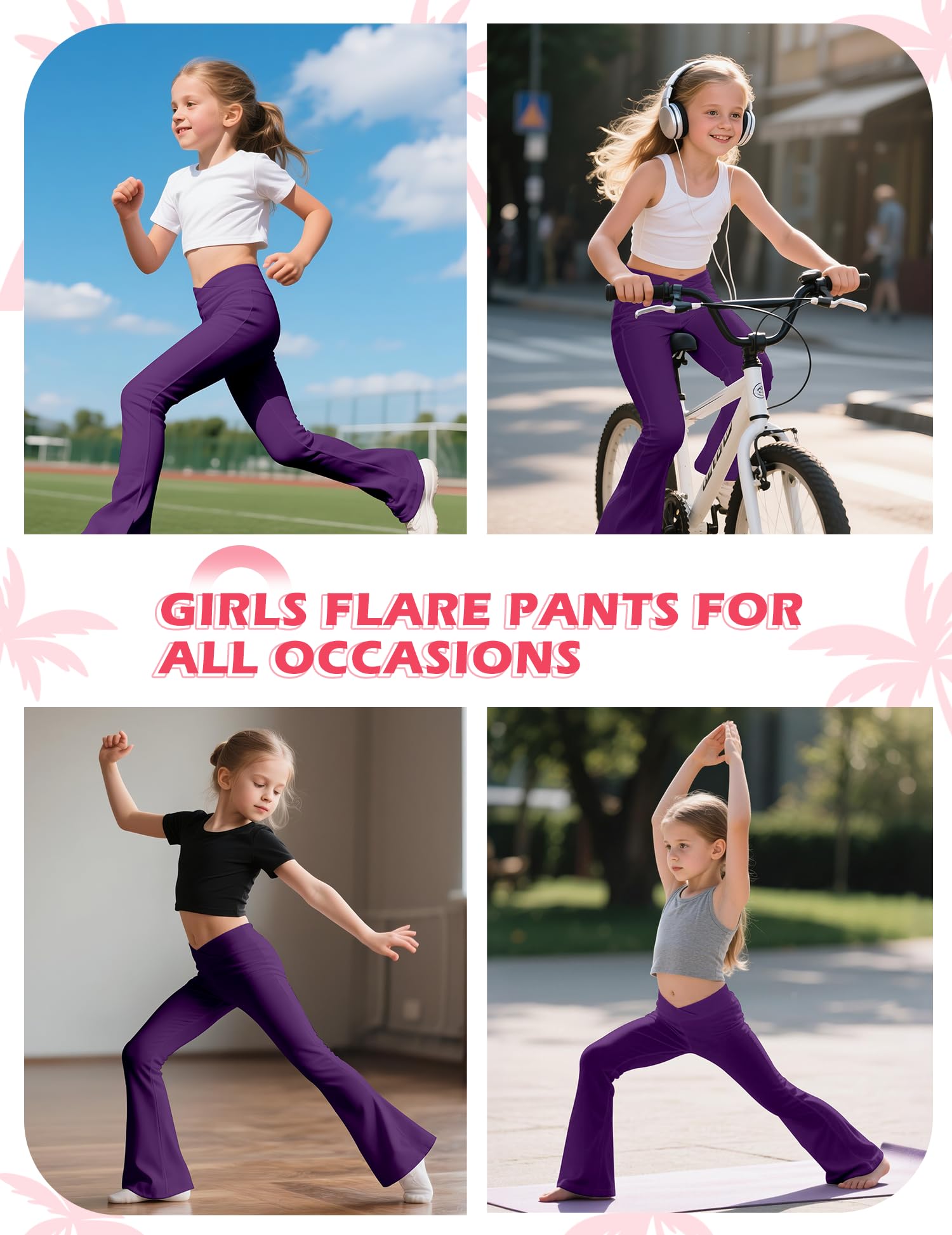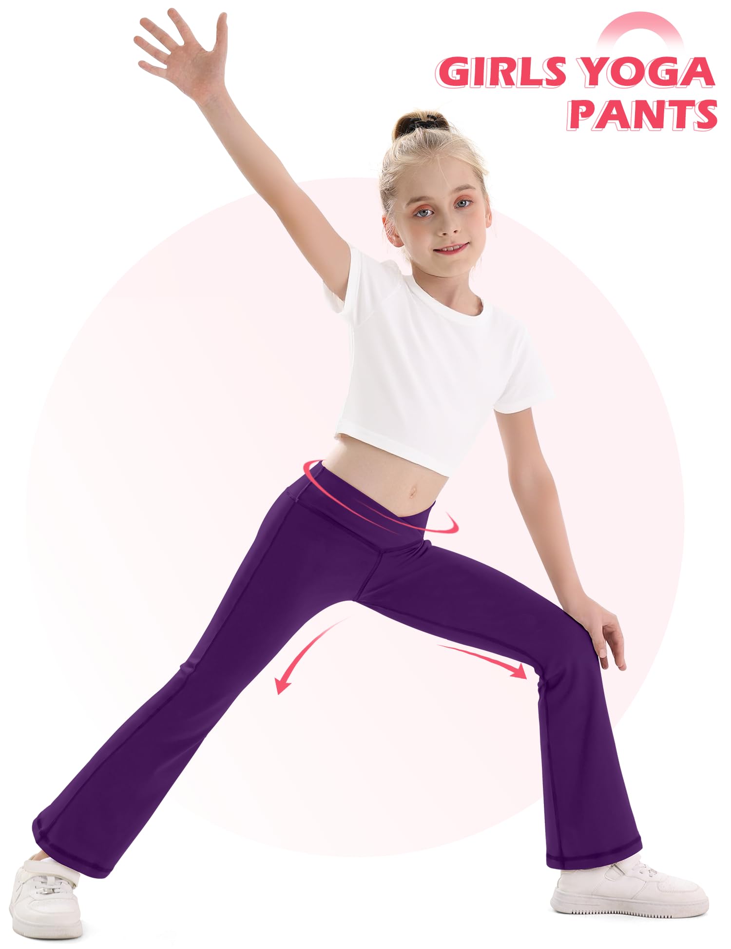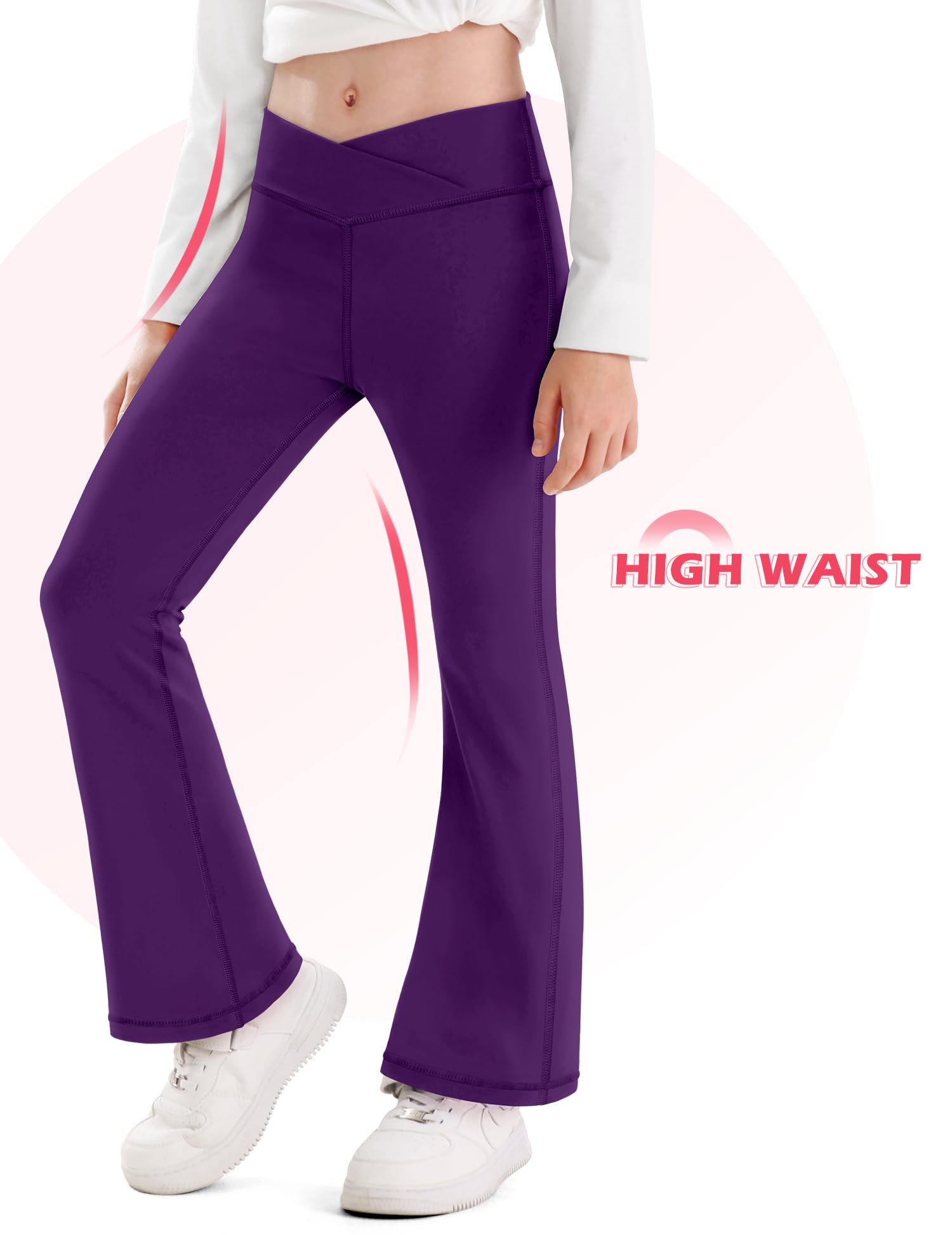 Lift & Support High-Rise Waistband:Engineered for active girls, our girls flare pants feature a tummy-smoothing crossover high waist that stays put during yoga or play. The flattering fit offers lightweight support without digging in, while the easy-on design (no more wardrobe struggles!) makes independence a breeze. Perfect for dance class or playground adventures!
