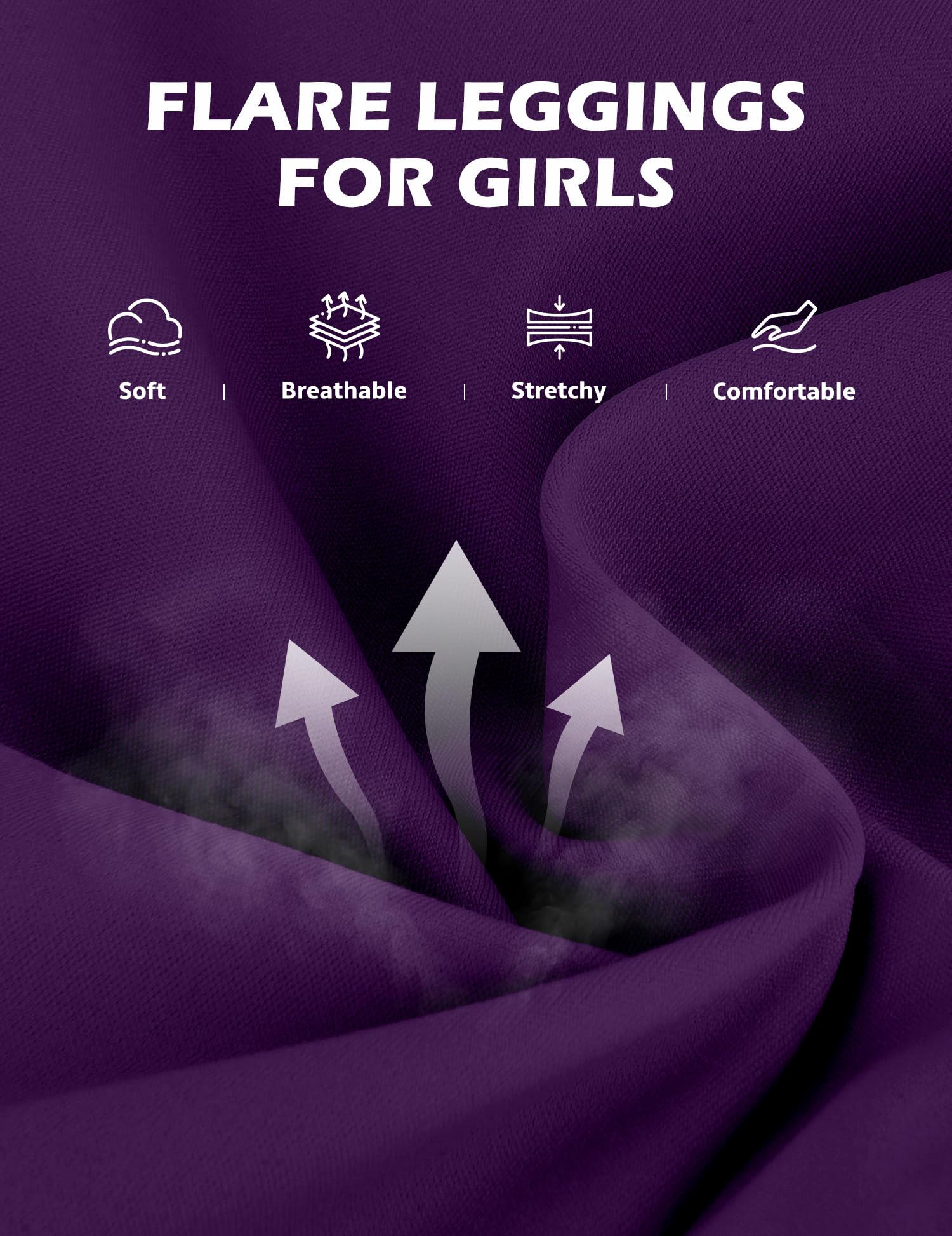 Chic Girls Flare Leggings:for sizes 9-16Y, we recommend ONE SIZE UP for a better fit. Amp up style with head-turning girls flare leggings! The bootcut flare elongates legs and adds swing to every step—whether she’s at school or a home. Combines classic with modern performance, making these flare leggings for girls a closet MVP.