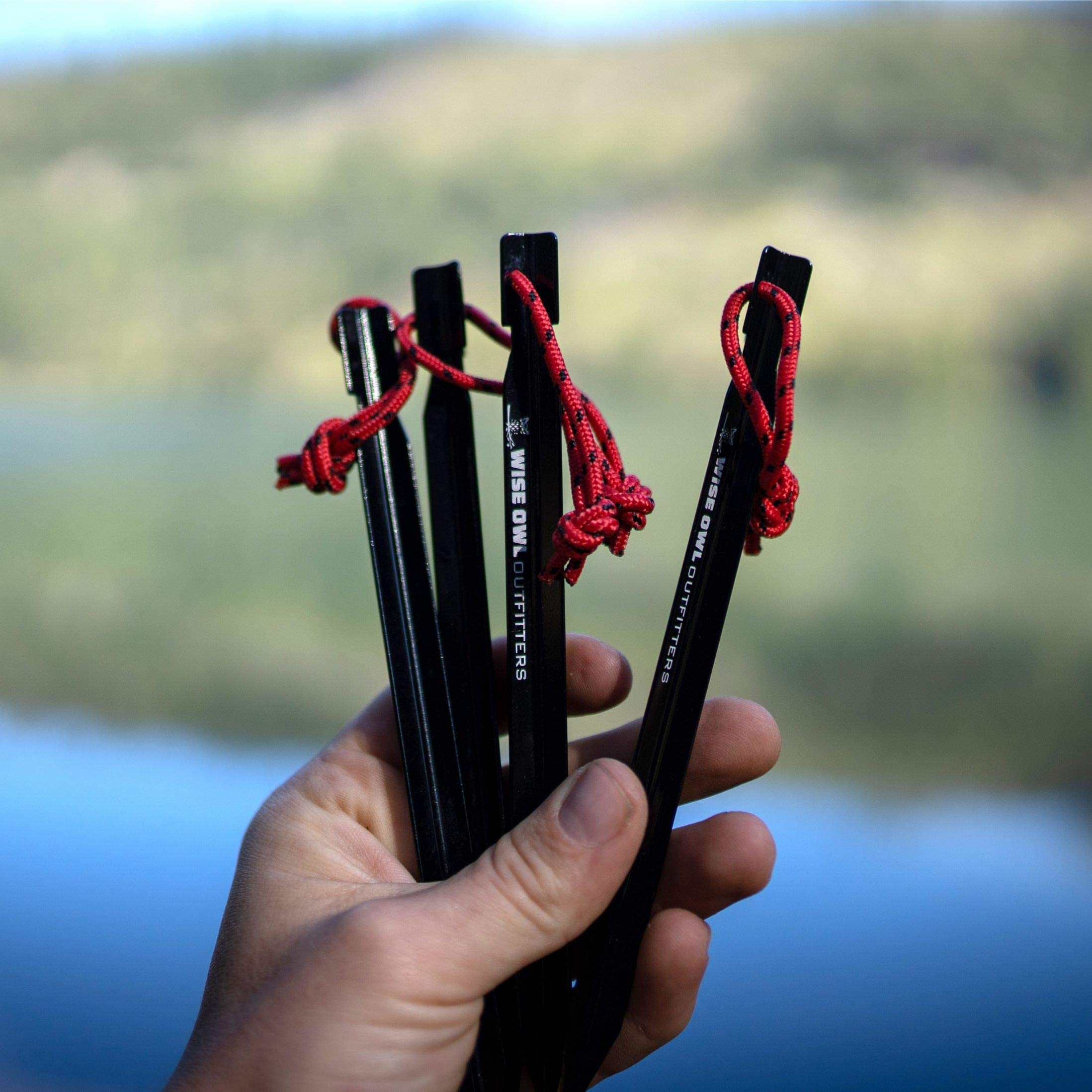 All-in-One Setup: Includes six 10-foot guy lines, aluminum tent stakes, a stake pouch, and a waterproof carry bag for efficient setup. Whether anchoring a tarp shelter or hammock rainfly, installation is quick and reliable for any outdoor terrain.