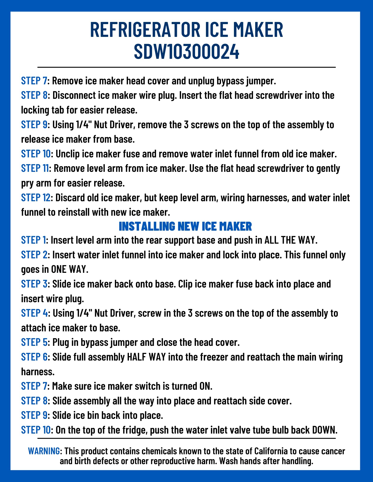 Ice maker ONLY | Does NOT include an ice level arm or wiring harness, these components will need to be reused from the original ice maker | If you are unable to reuse these components you may need the SDW10882923 kit instead | Fits model specific side-by-side refrigerators