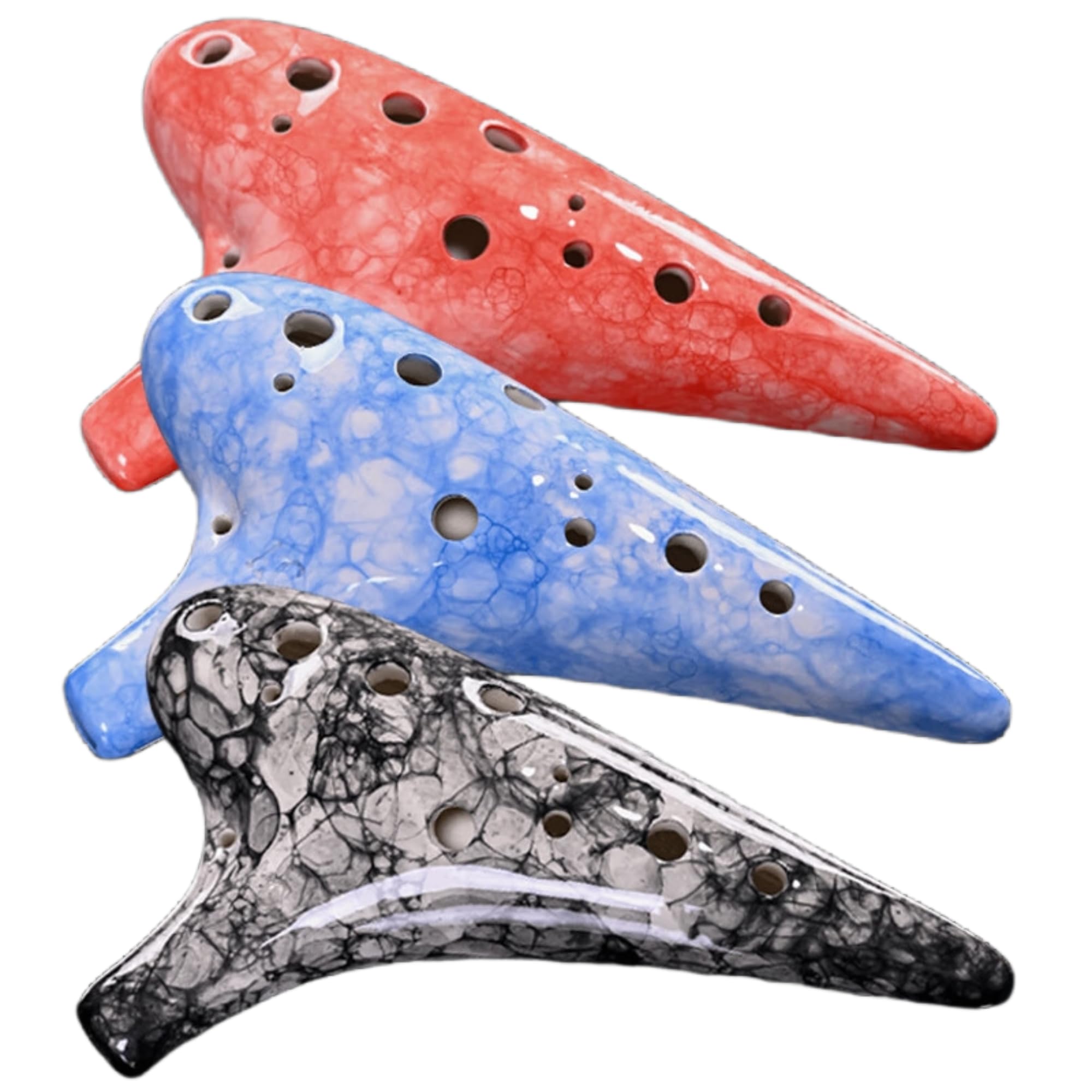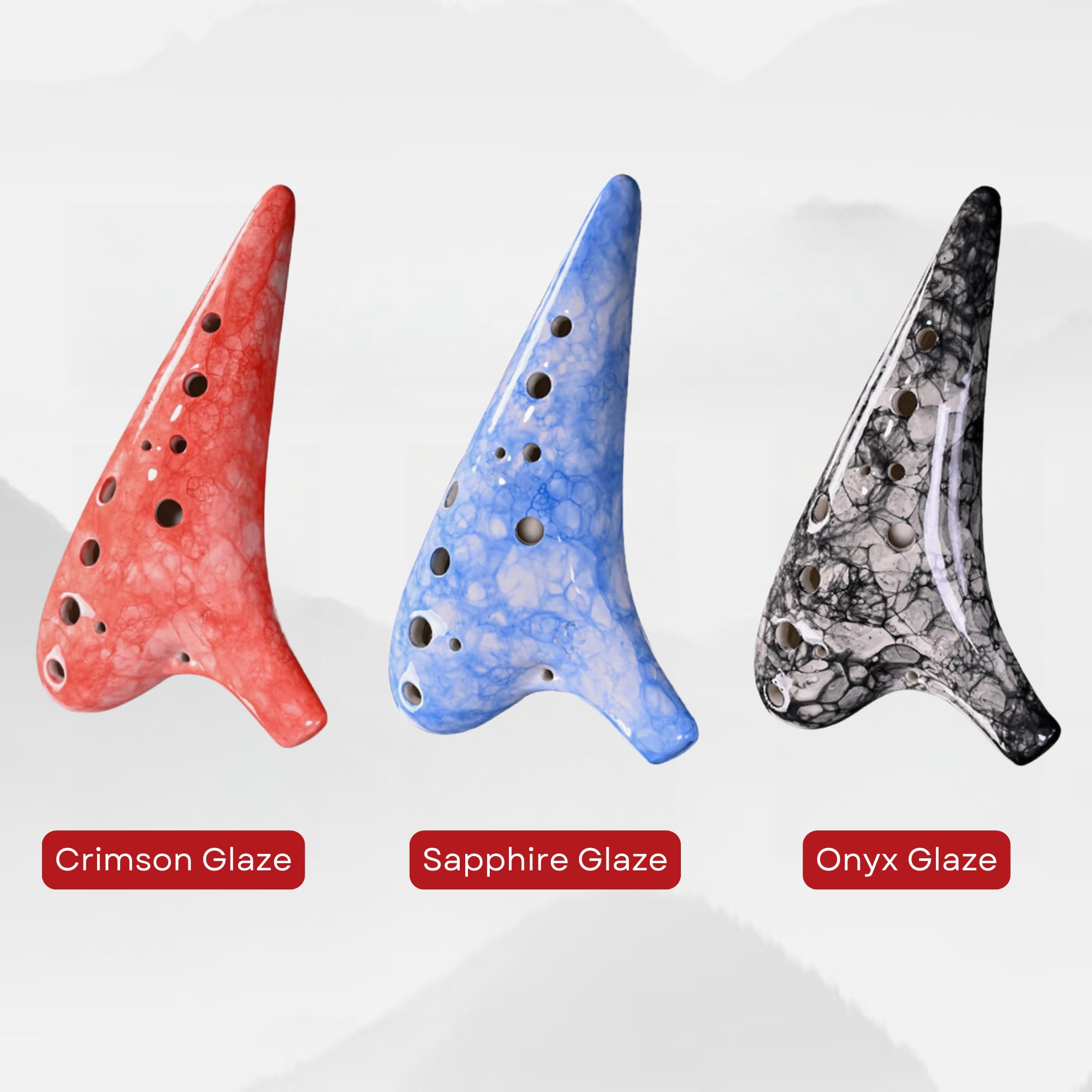 Premium Marble Glaze Finish: Choose from three stunning colors—Crimson Glaze, Sapphire Glaze, and Onyx Glaze. Each ocarina is coated with a vibrant marble glaze that not only looks beautiful but also ensures a smooth and comfortable grip, making it easy to hold and play.