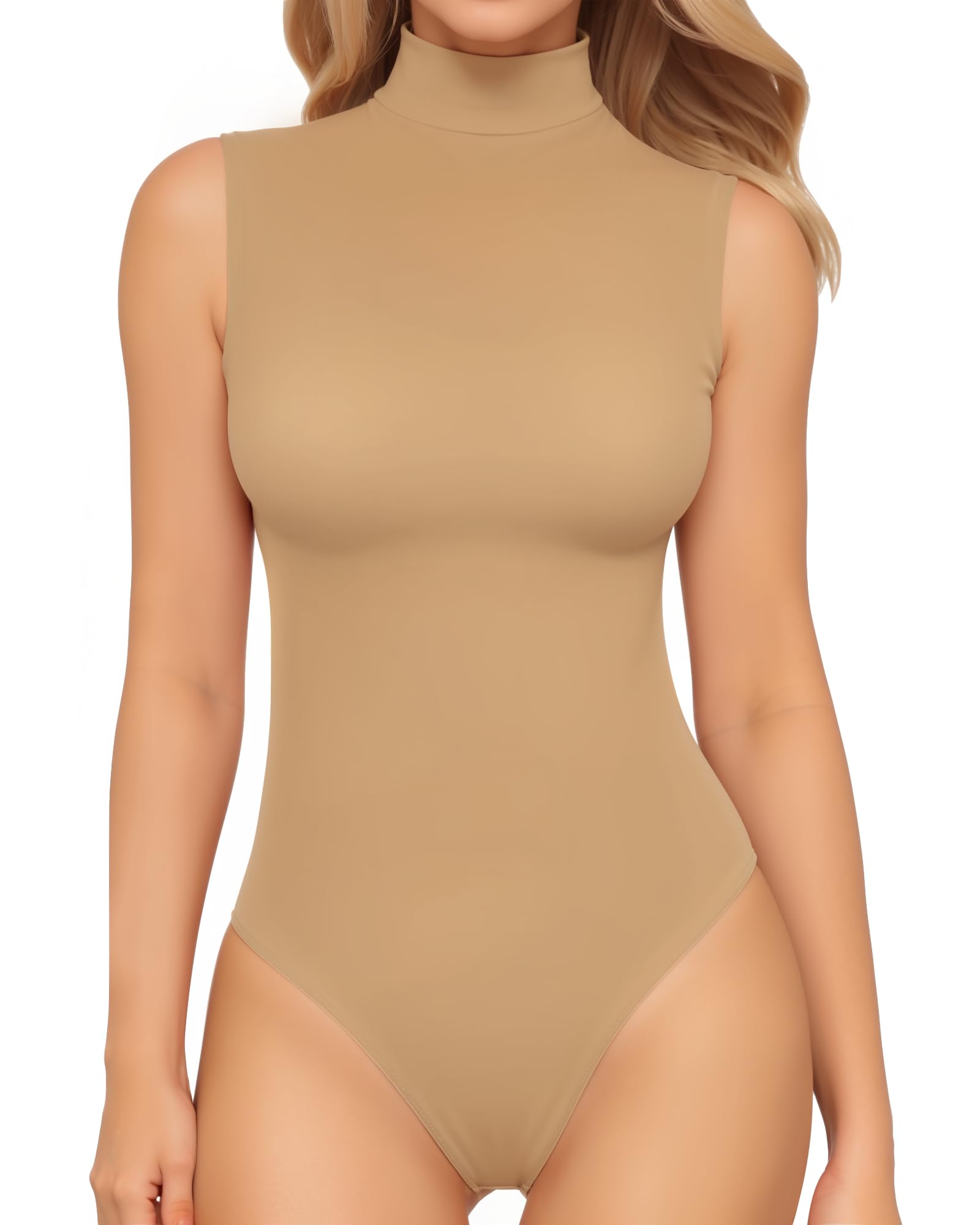 Second-skin Bodysuit Collection: MANGOPOP seamless Mock Turtle Neck sleeveless bodysuit ,offering an incredibly soft, stretchy, lightweight, and breathable feel akin to a second skin
