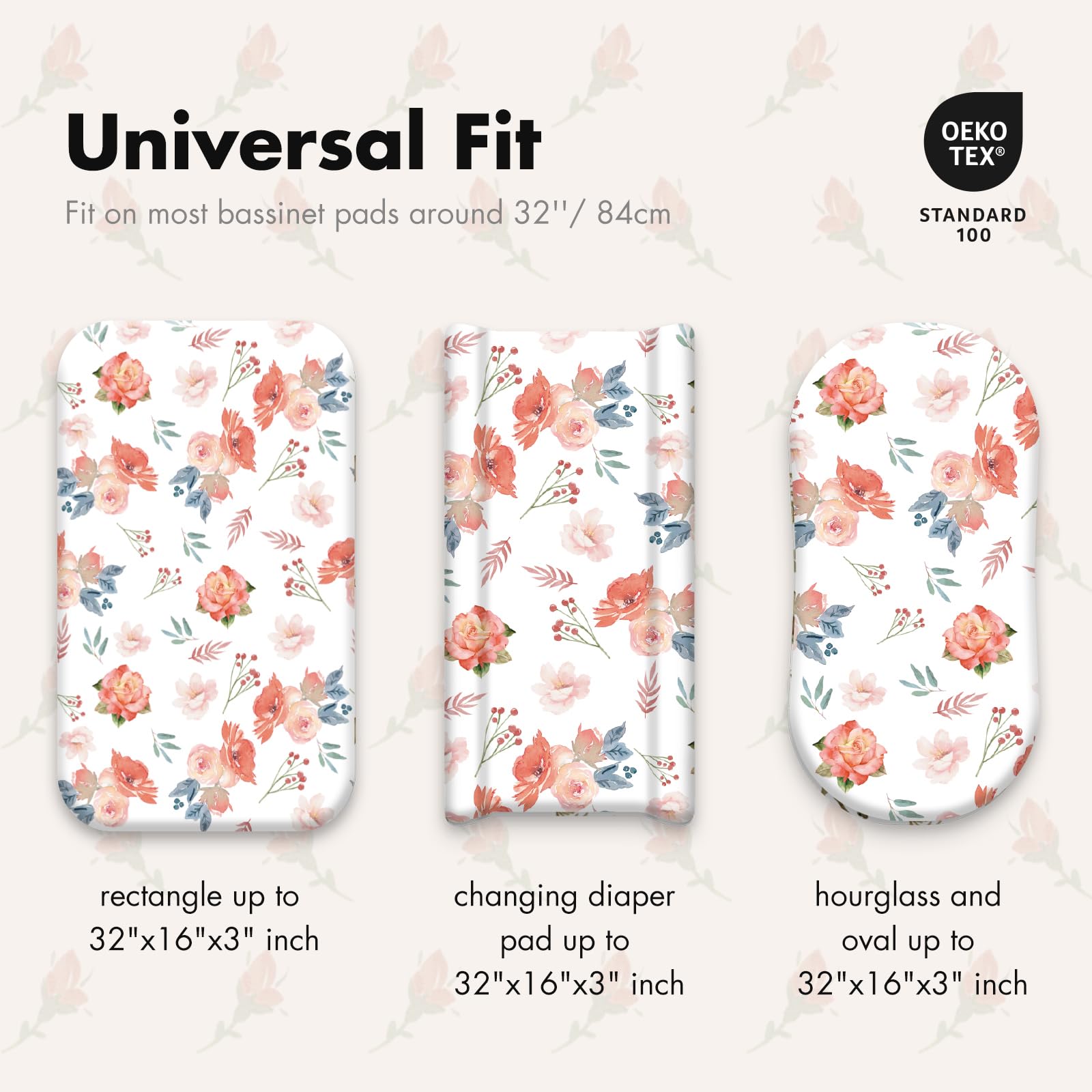 ONE SIZE FITS ALL (32"X16"X3"): Classic universal size. Not too big, not too small, smooth and snug to fit almost all bassinets, loungers, cradles, and co-sleepers' standard, oval, round, rectangle, and hourglass-shaped mattresses