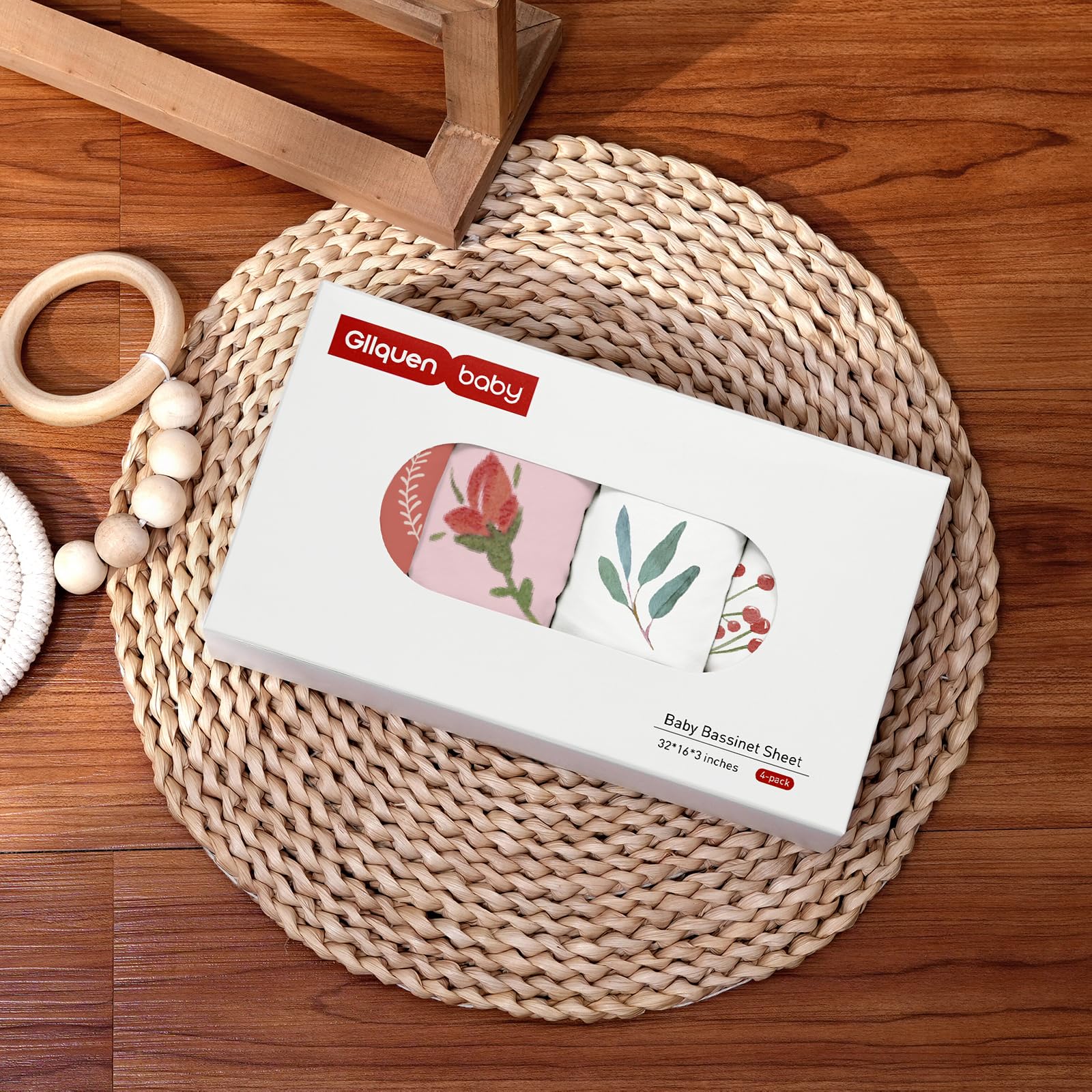 SUPER SOFT FABRIC: Our baby bedding bassinet sheets are made of soft and breathable fabric that best fits the standard bassinet crib. The elastic band surrounds the mattress, so mothers will not worry that it will slip away, creating a comfortable and stable sleeping space for the baby. Rest assured, every product meets the OEKO-TEX Standard 100 and is safe for babies