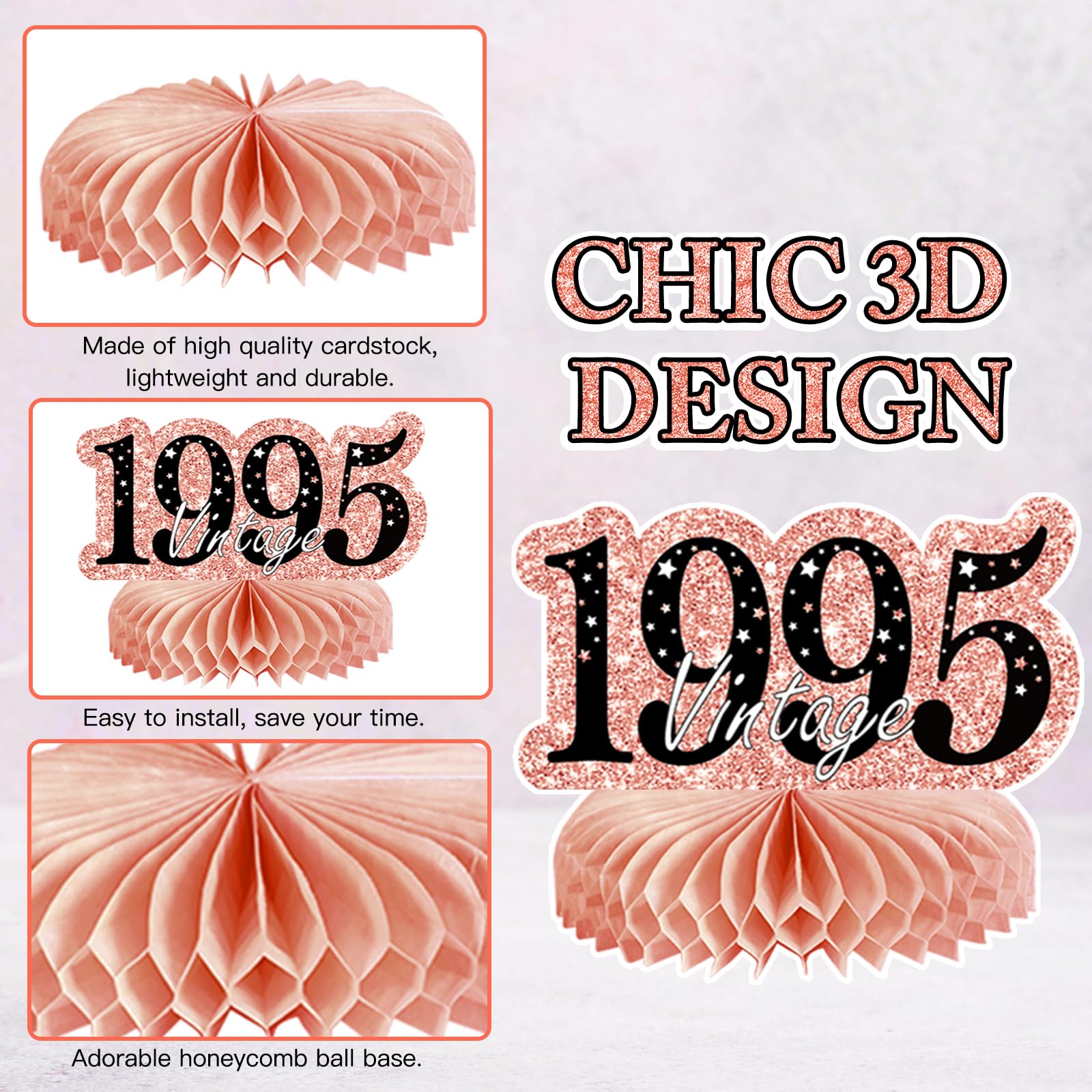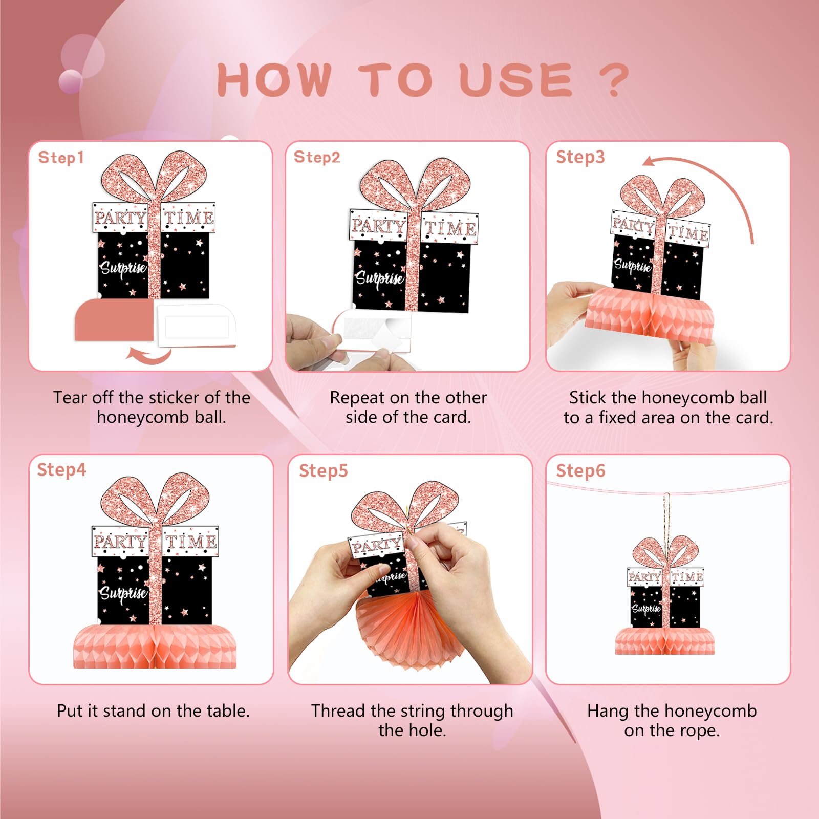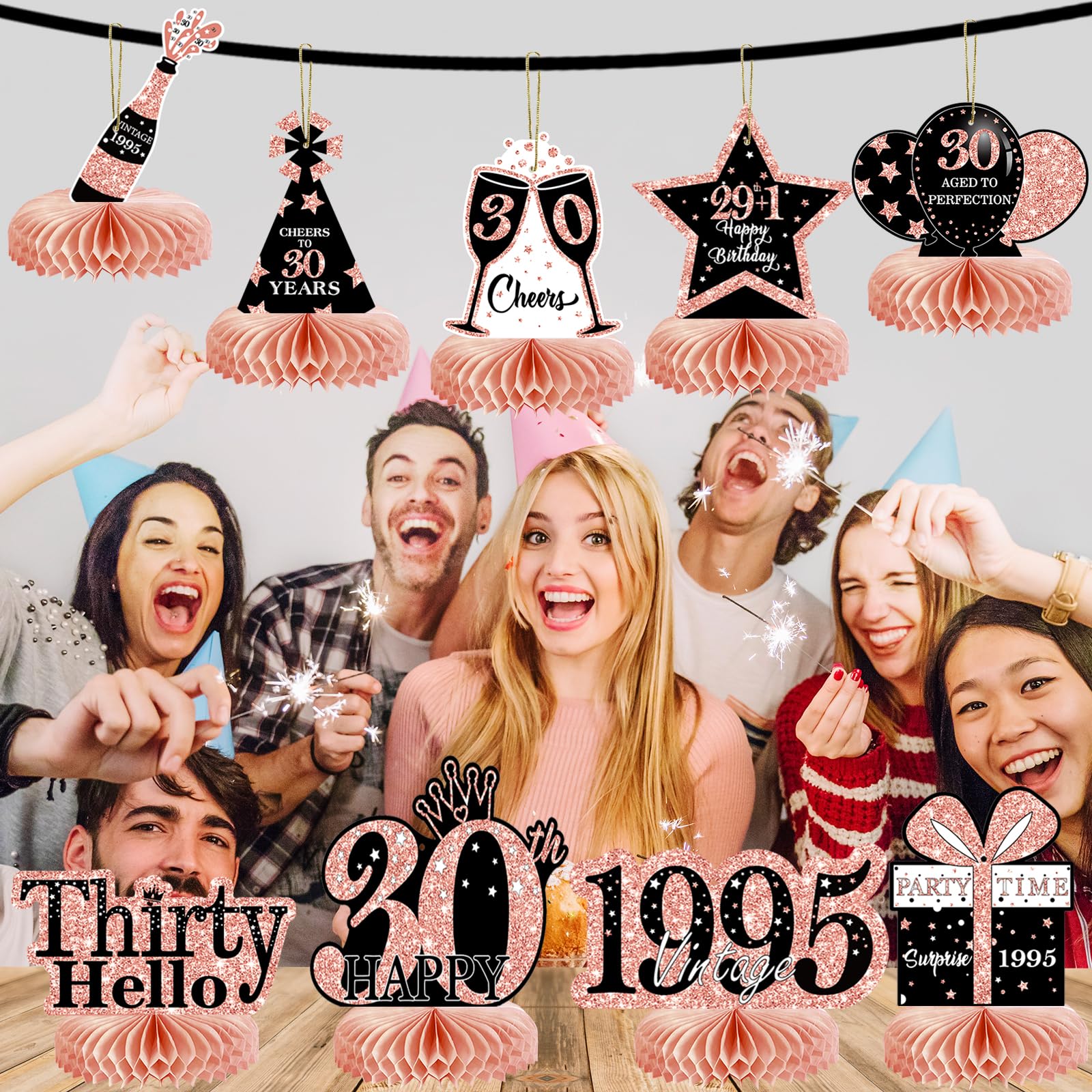 [You will get] - 9 pcs rose gold 30th birthday decorations honeycomb table centerpieces for women, it contains 9 patterned cardboards and 9 paper honeycombs,and matching lanyards.These chic 30th birthday table decorations are enough to decorate your themed party.