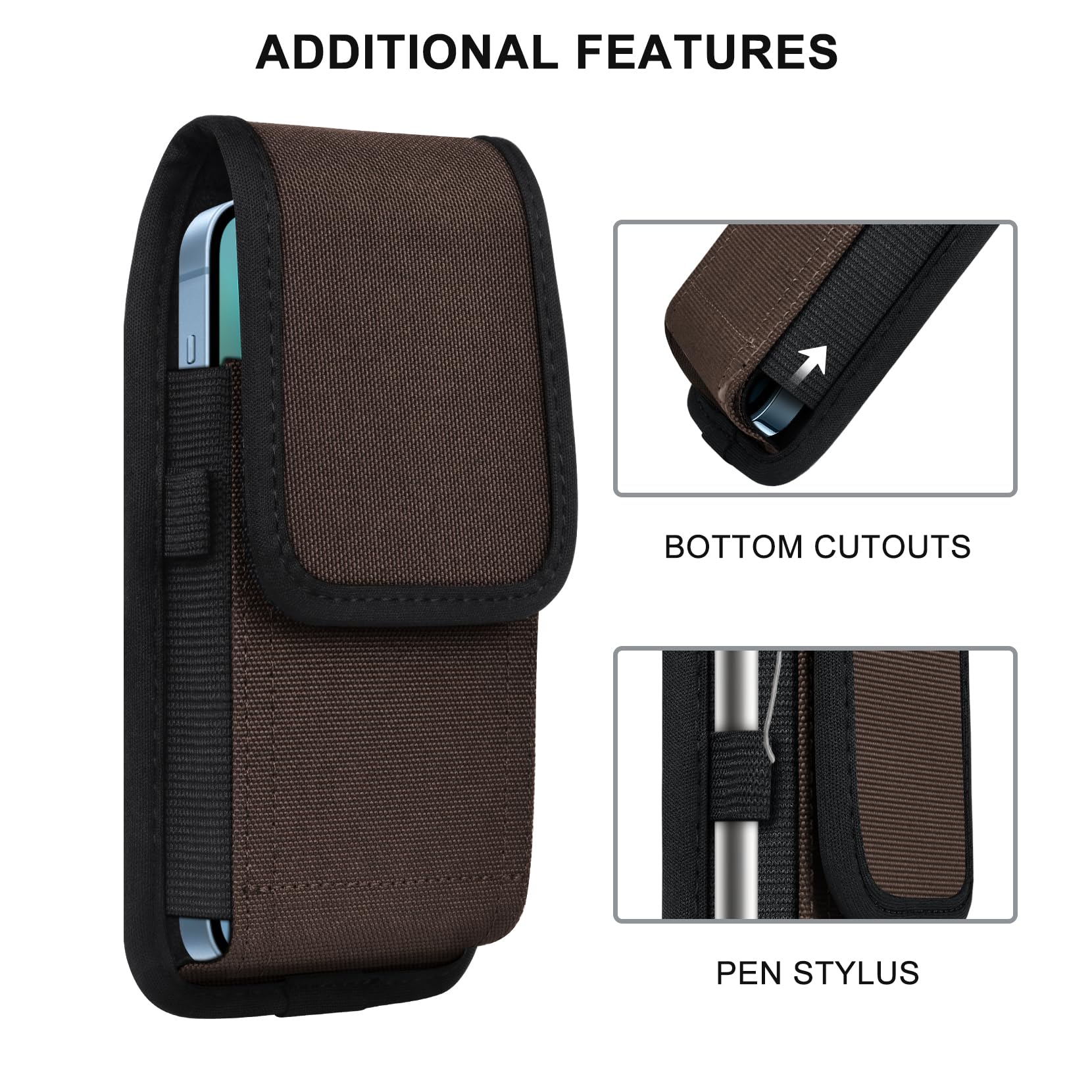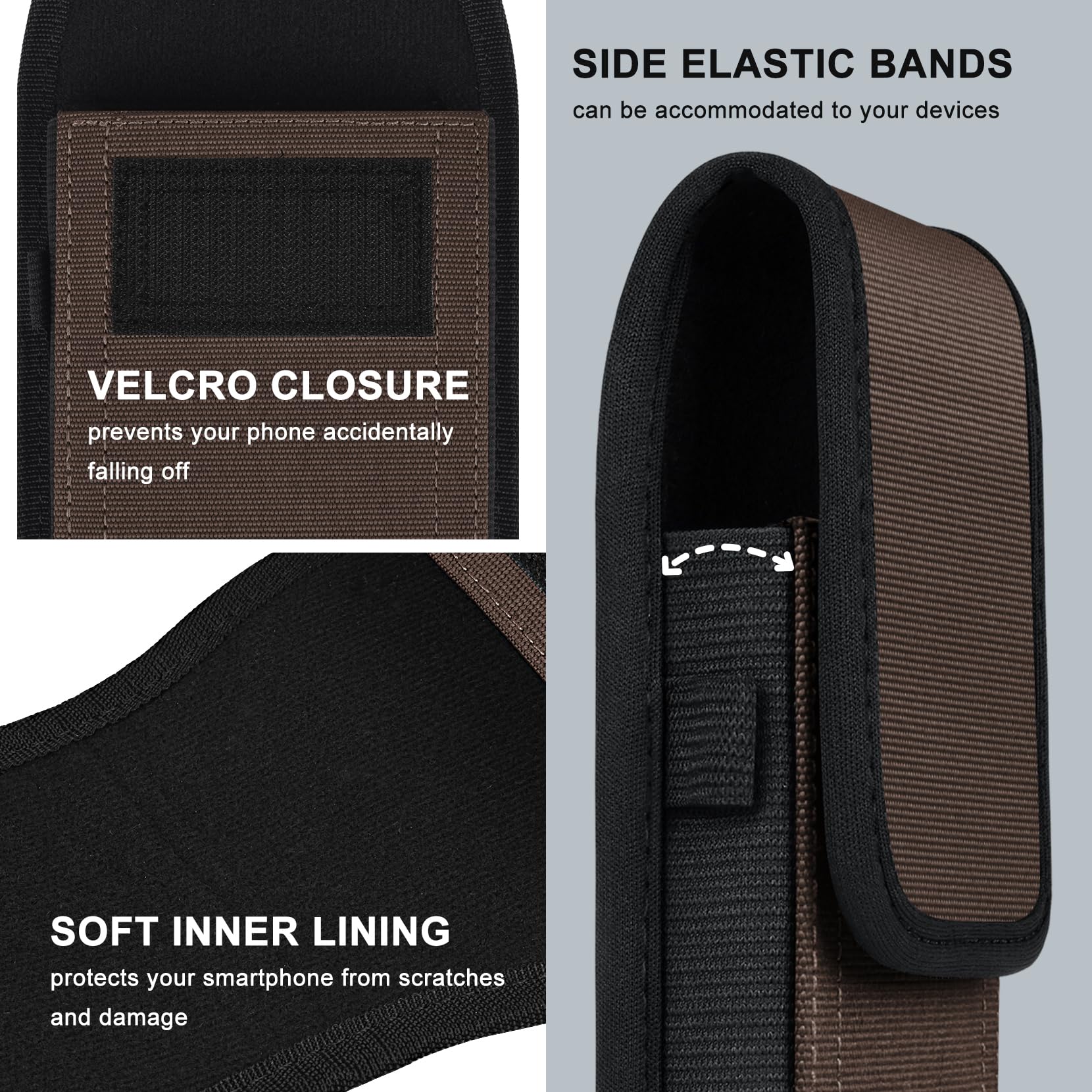 Premium Material: This cell phone holster with belt loop is handcrafted from nylon, fine and tight stitching and durable; Suitable for camping, hiking, outdoor-living, trekking
