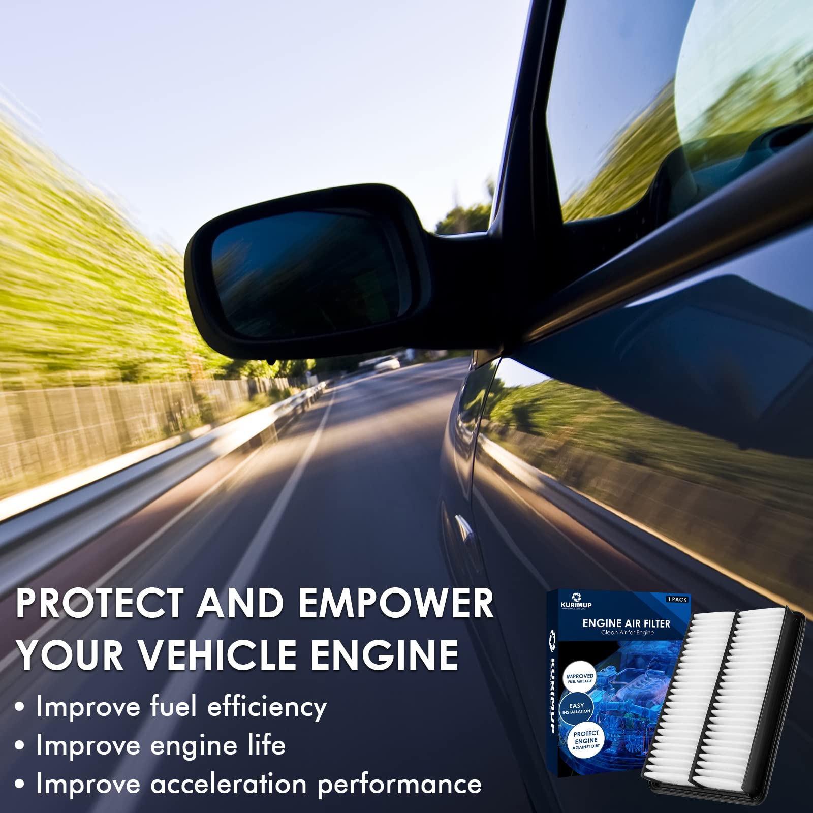 [99% Air Purification] KURIMUP engine air filter is made of high-density, high-capture ability, and high-breathable fabric material. It reliably filters out 99% of impurities in air and provides larger volume clean airflow for engine, then increases efficiency of fuel combustion, mileage per gallon and optimizes engine power.