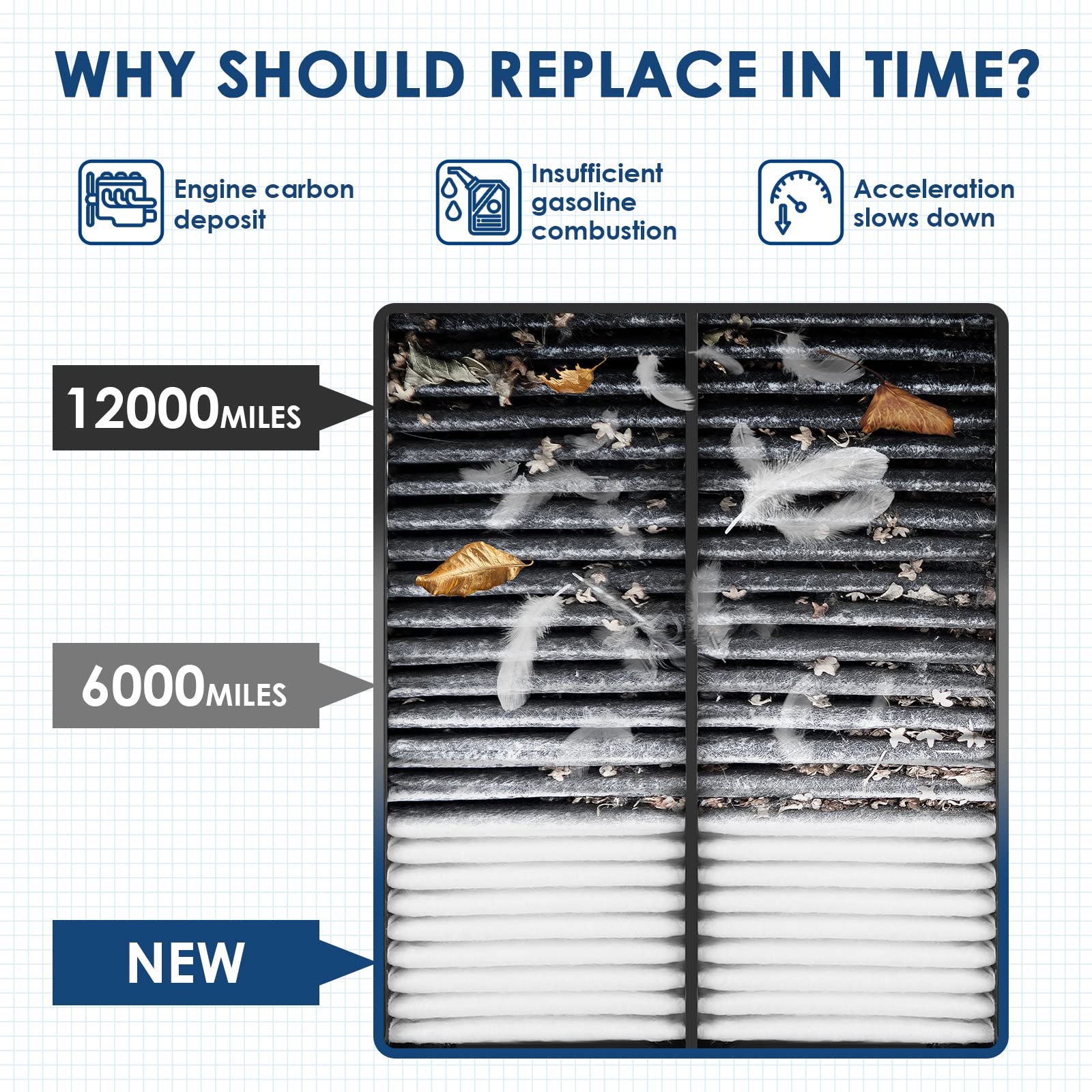 [Replacement compatible Note] Please check if this filter matches your car by following listing fitment guide or product description compatible list. Recommended replacement check every 12,000 miles.