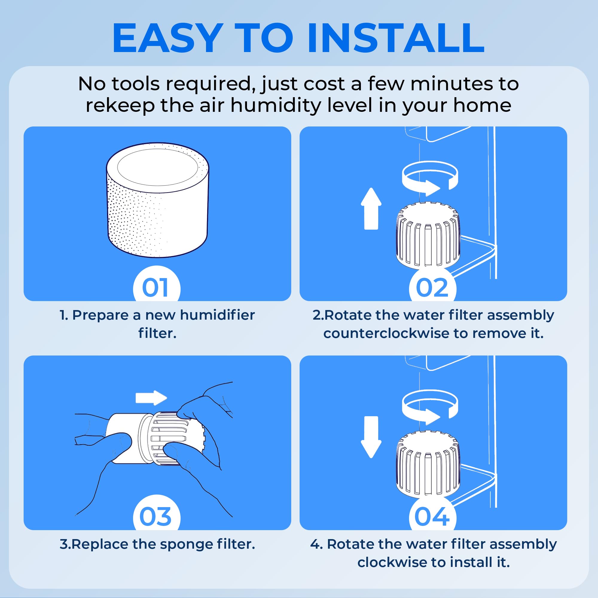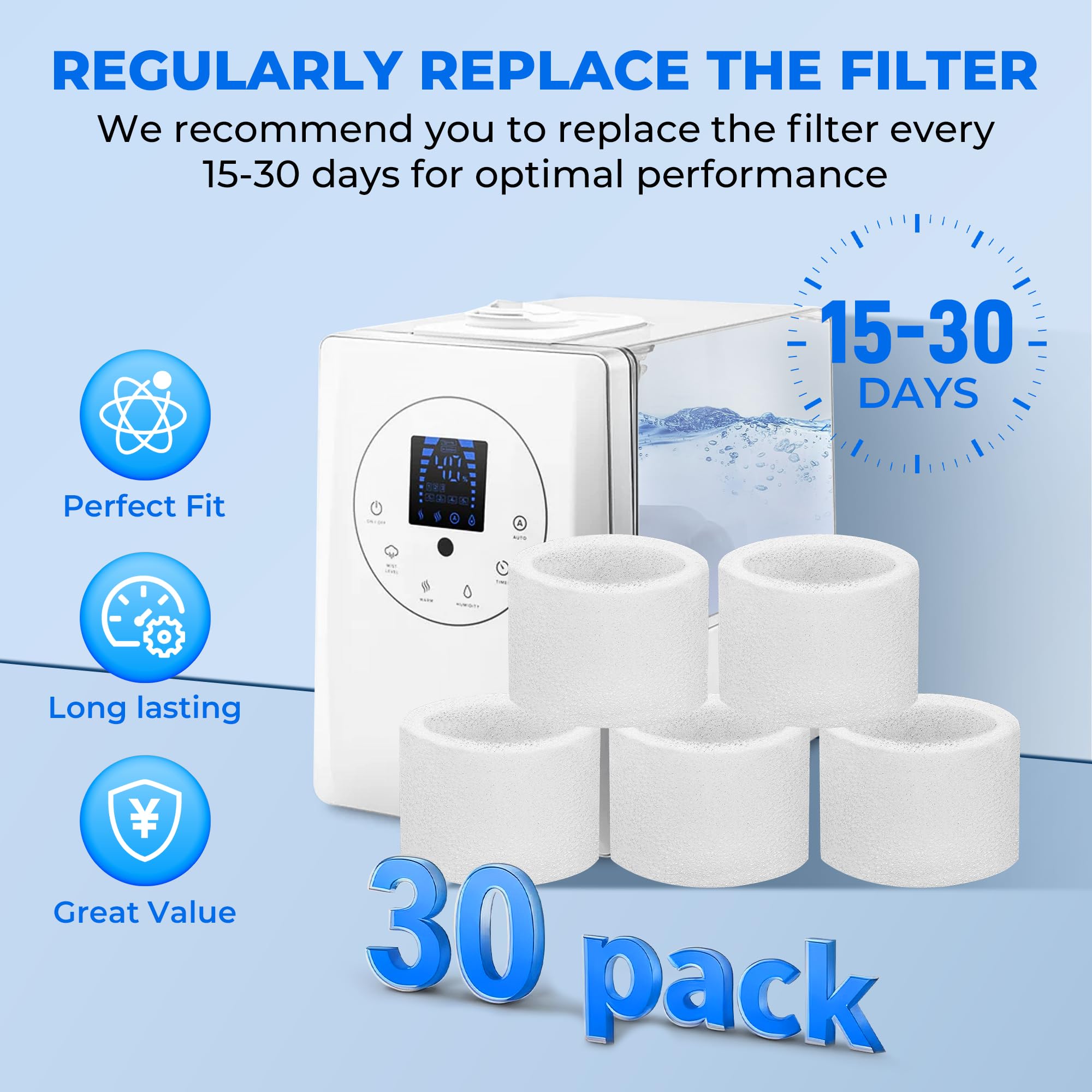 ππ’π¦π§-ππππππ§ππ©π ππ’π’ππ¦ - Package includes 30 x humidifier replacement filter. We recommend you to replace the filter every 15-30 days for optimal performance (depending upon your usage). It is fairly easy to compatible with levoit humidifier replacement filter, no tools required, just cost you few minutes to rekeep the air humidity level in your home in a healthy range and improve your breathing comfort