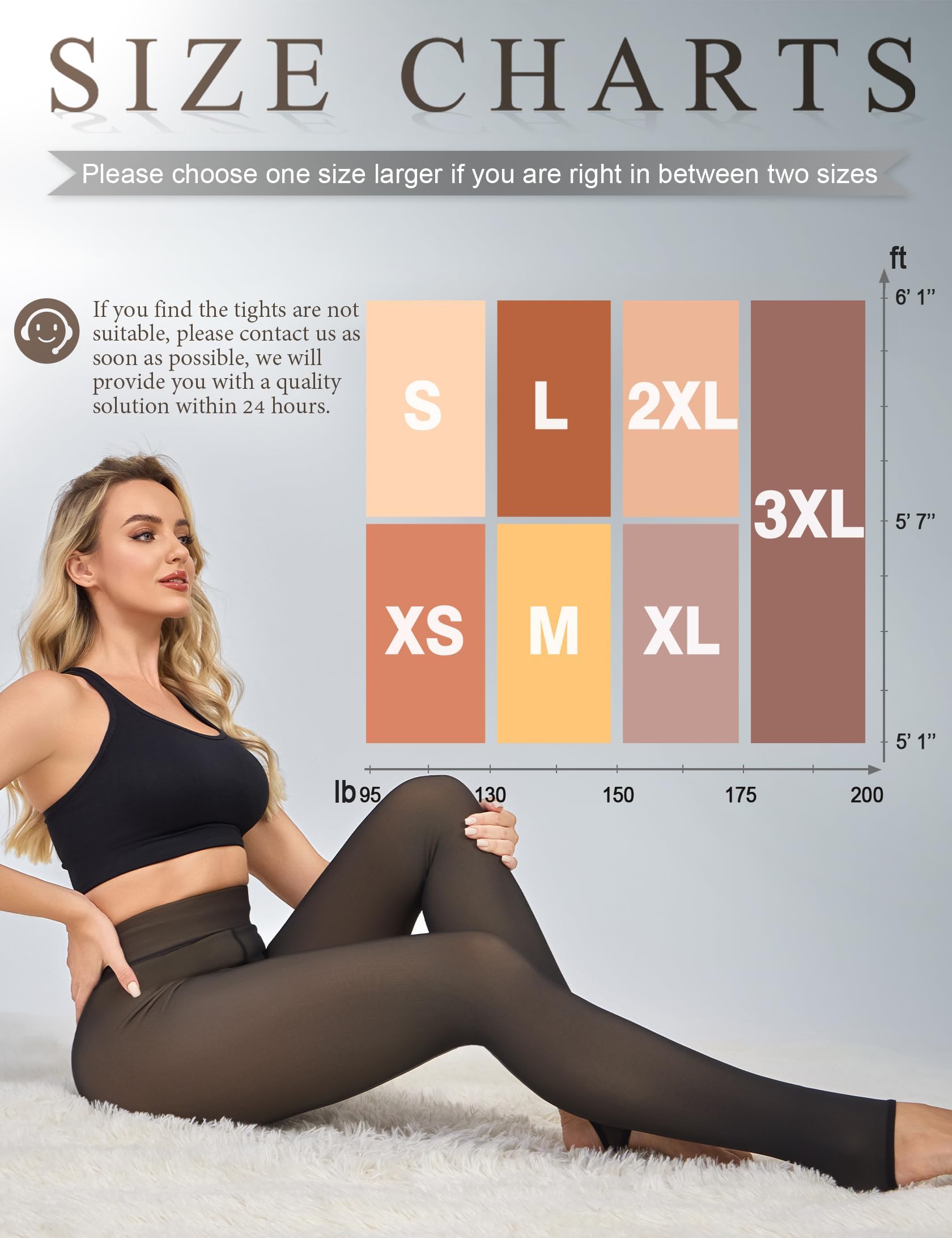 【SIZE UPGRADE】: Thermal pantyhose come in 7 sizes XS-3XL, for women of all shapes and sizes, you can follow the size chart to choose size that suits you best. Sheer fleece lined tights can be well match with skirts, wool coats, denim skirts, sweaters, boots and high heels. Perfect Gift for your wife, mother, friends and anyone you love