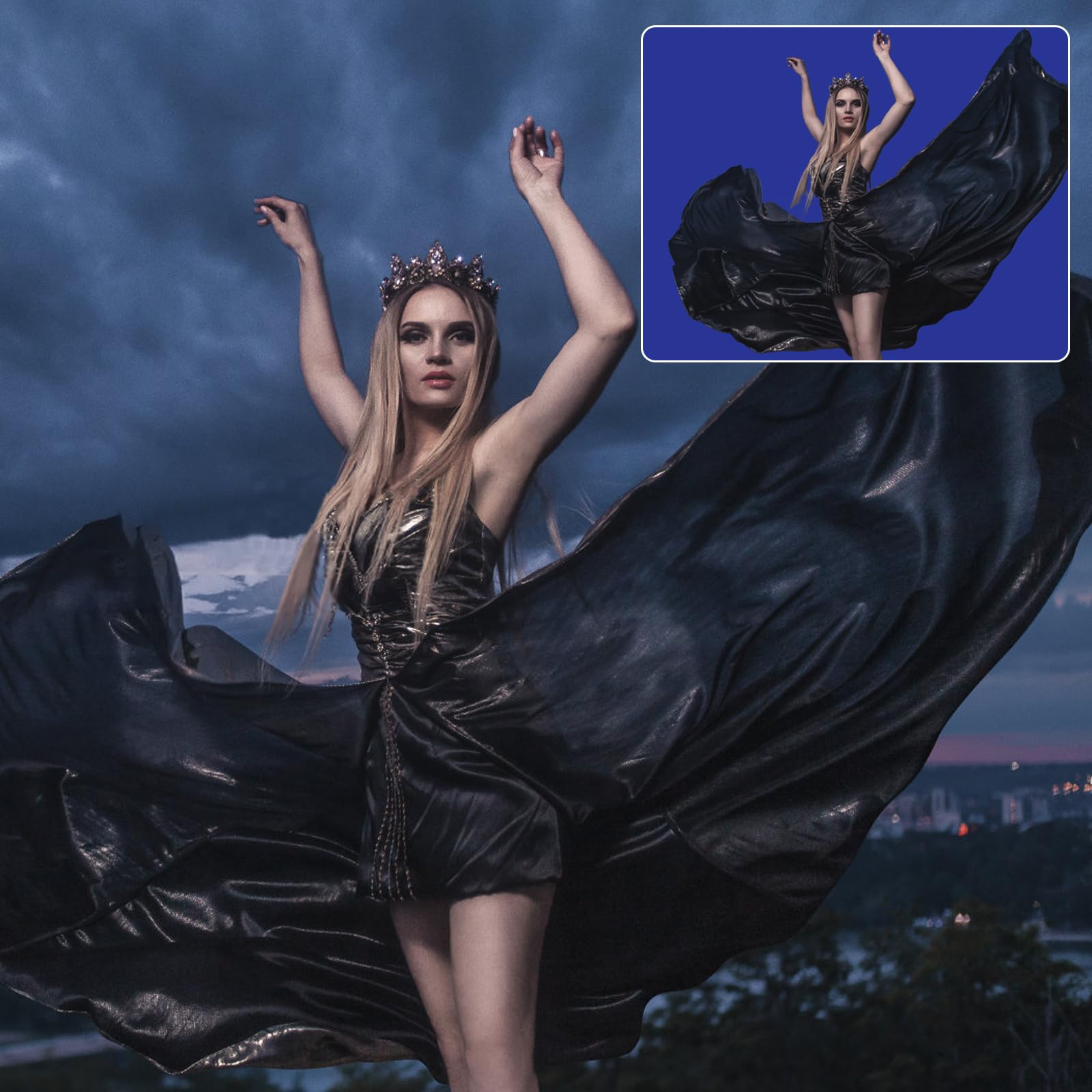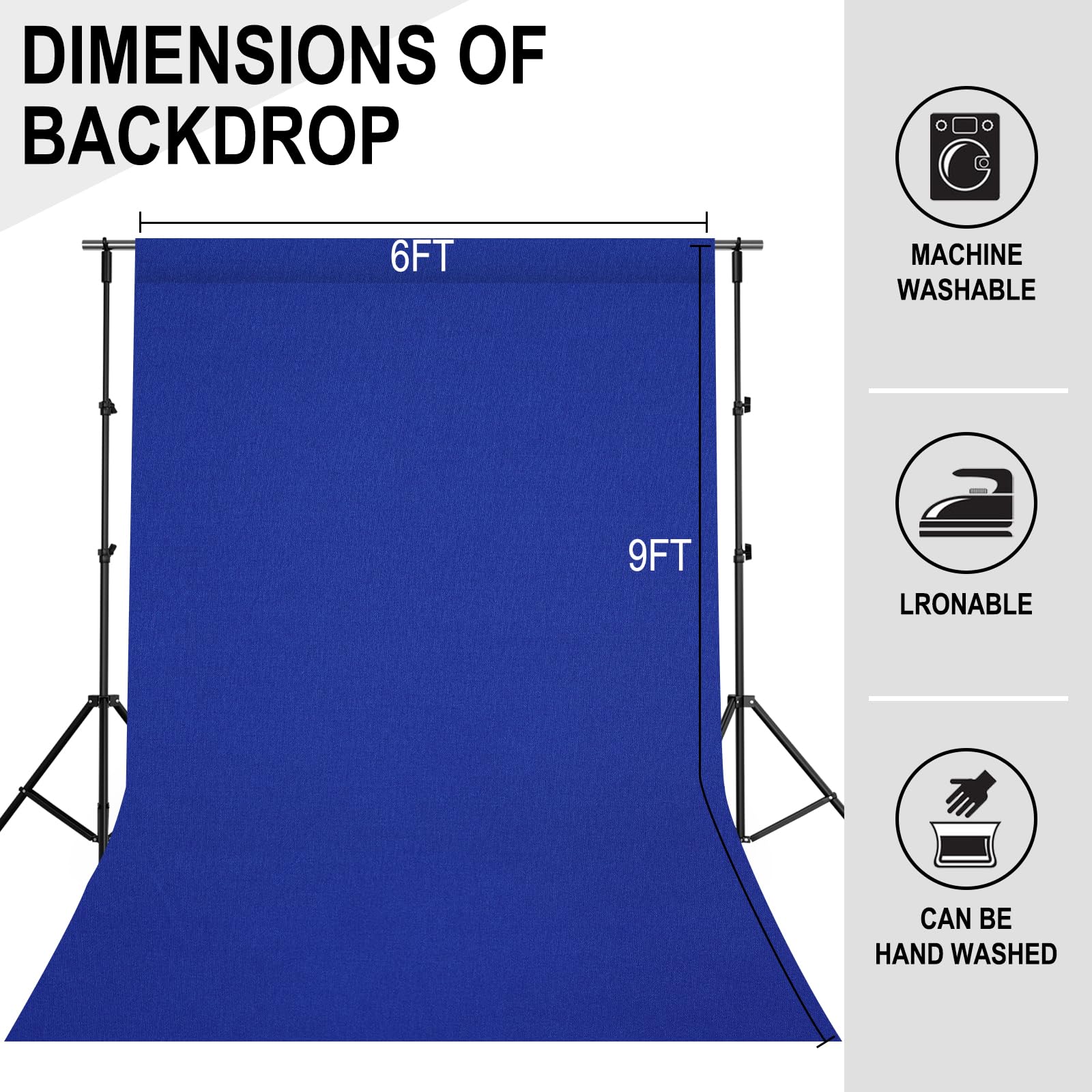 6ftx9ft royalblue photography backdrop background, 100% polyester, completely seamless, offer a good result for shooting. Only the backdrop, no include a stand.