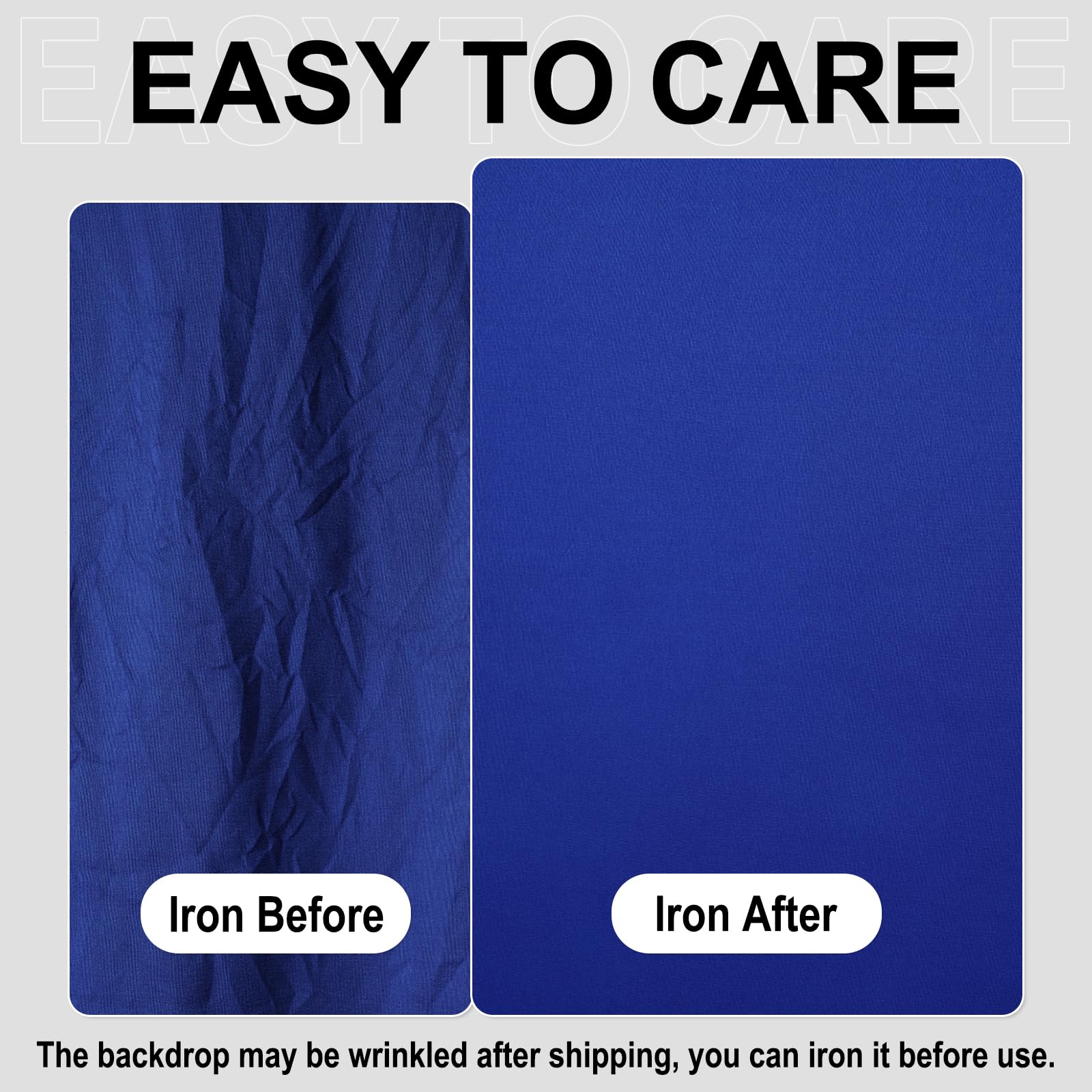 This backdrop is cleaned easily, using warm water and a gentle detergent, that help the backdrop remain looking like new. If necessary, pls iron the surface with steam iron but not dry iron.