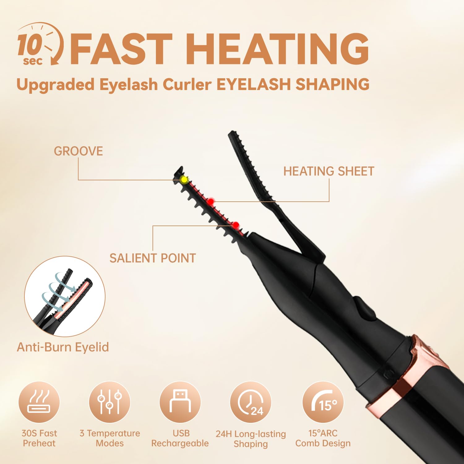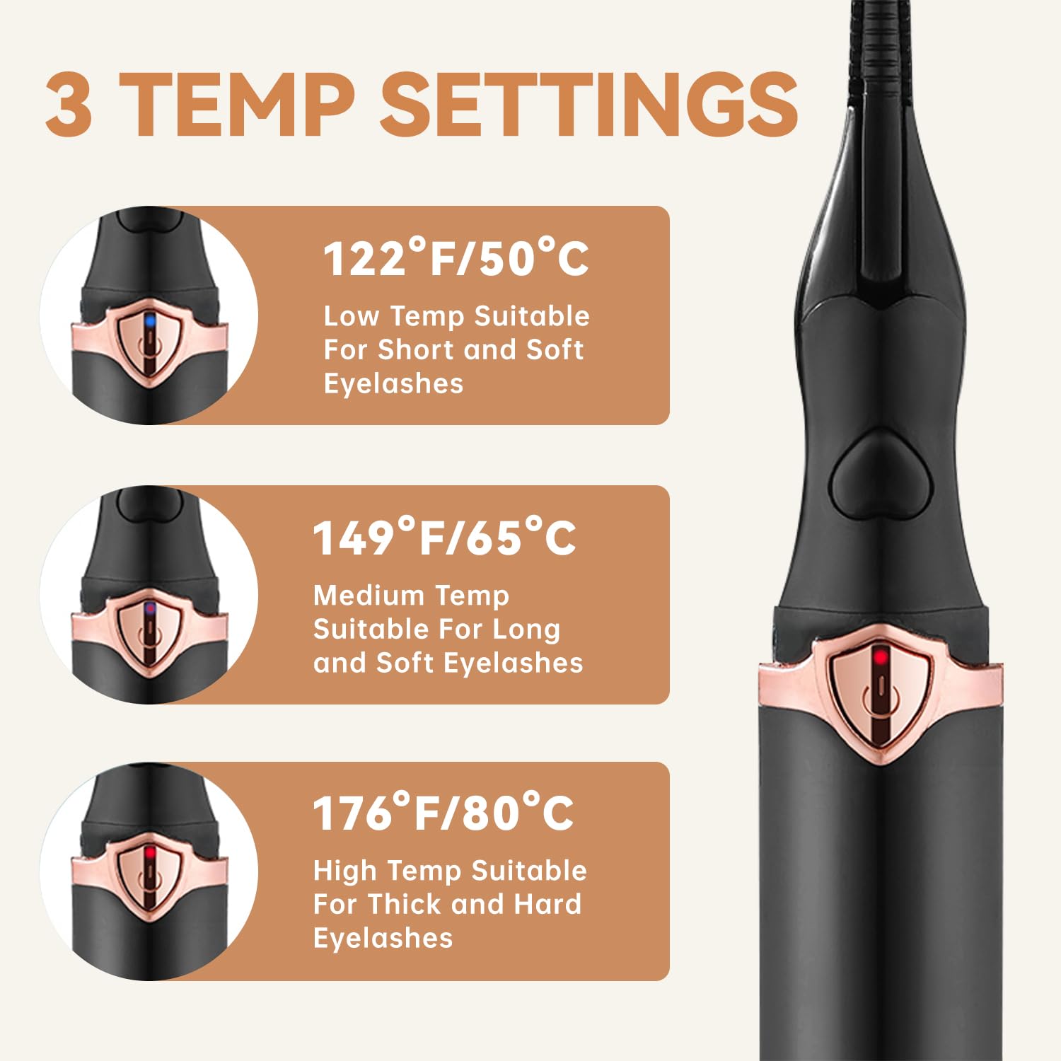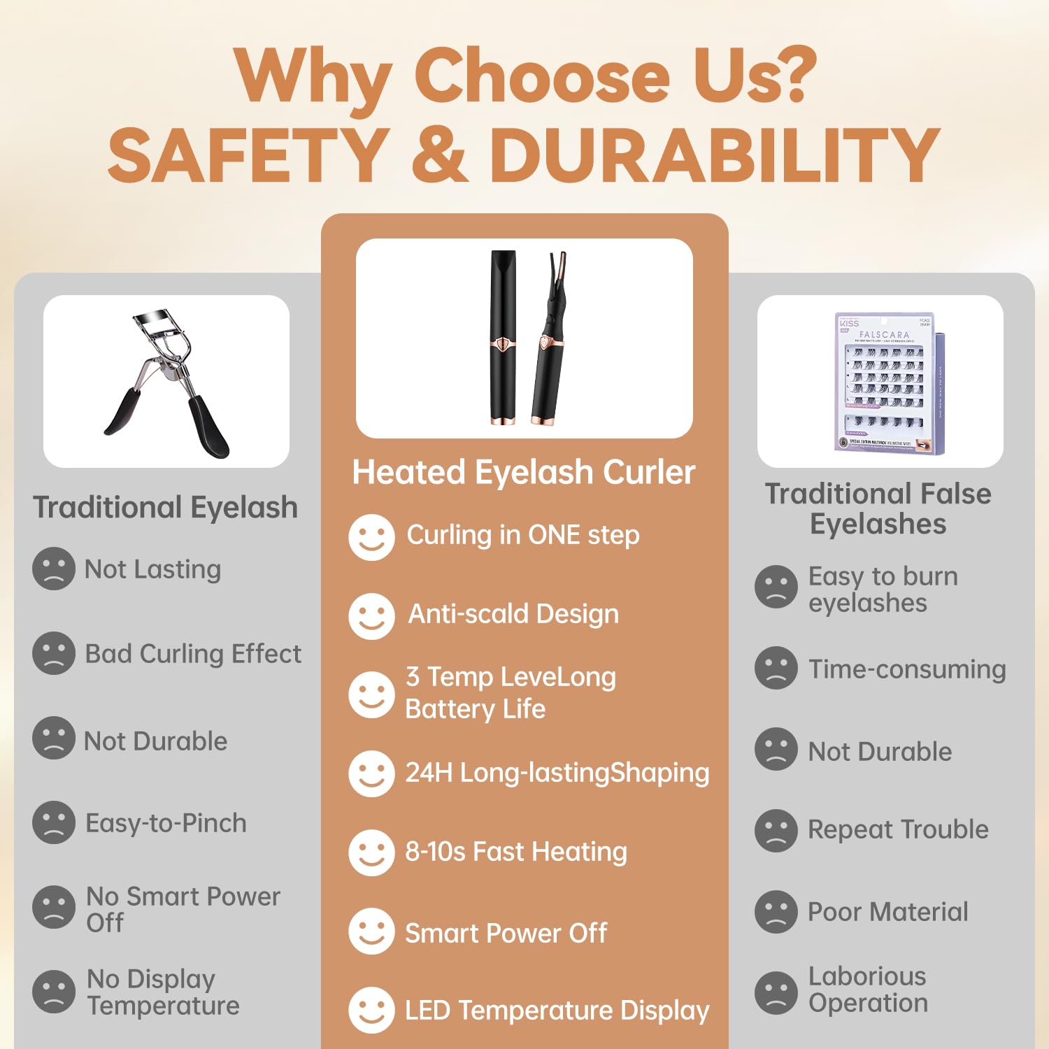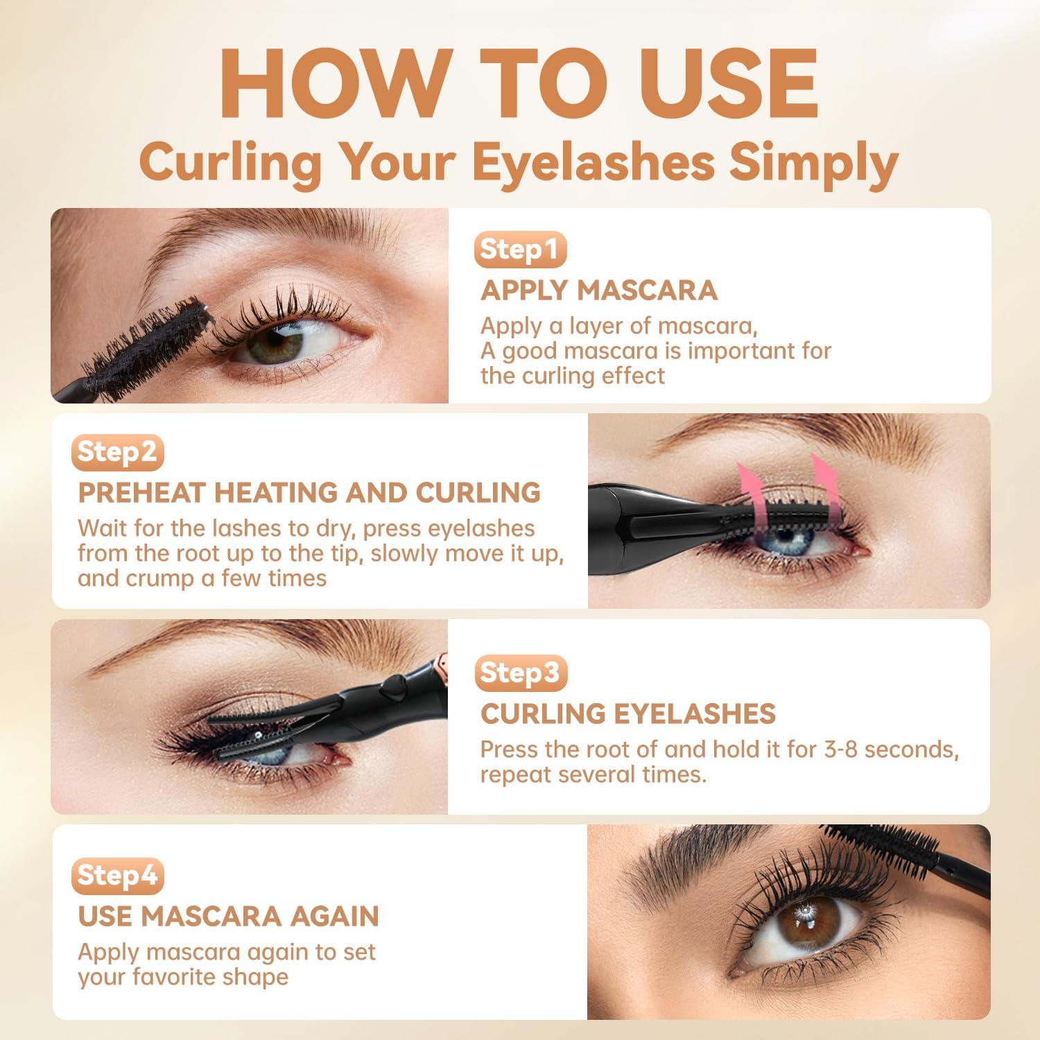 Beginner-Friendly and Easy to Use: Our heated eyelash curler comes with a step-by-step video tutorial to help you master the technique: press at the base of your lashes for about 5–10 seconds, then brush to the middle of your lashes and press again for another 5–10 seconds. Finally, press at the tips for 5–10 seconds. Repeat this process 5-8 times. Whether you’re a beginner or an expert, you can easily achieve perfect, long-lasting curls