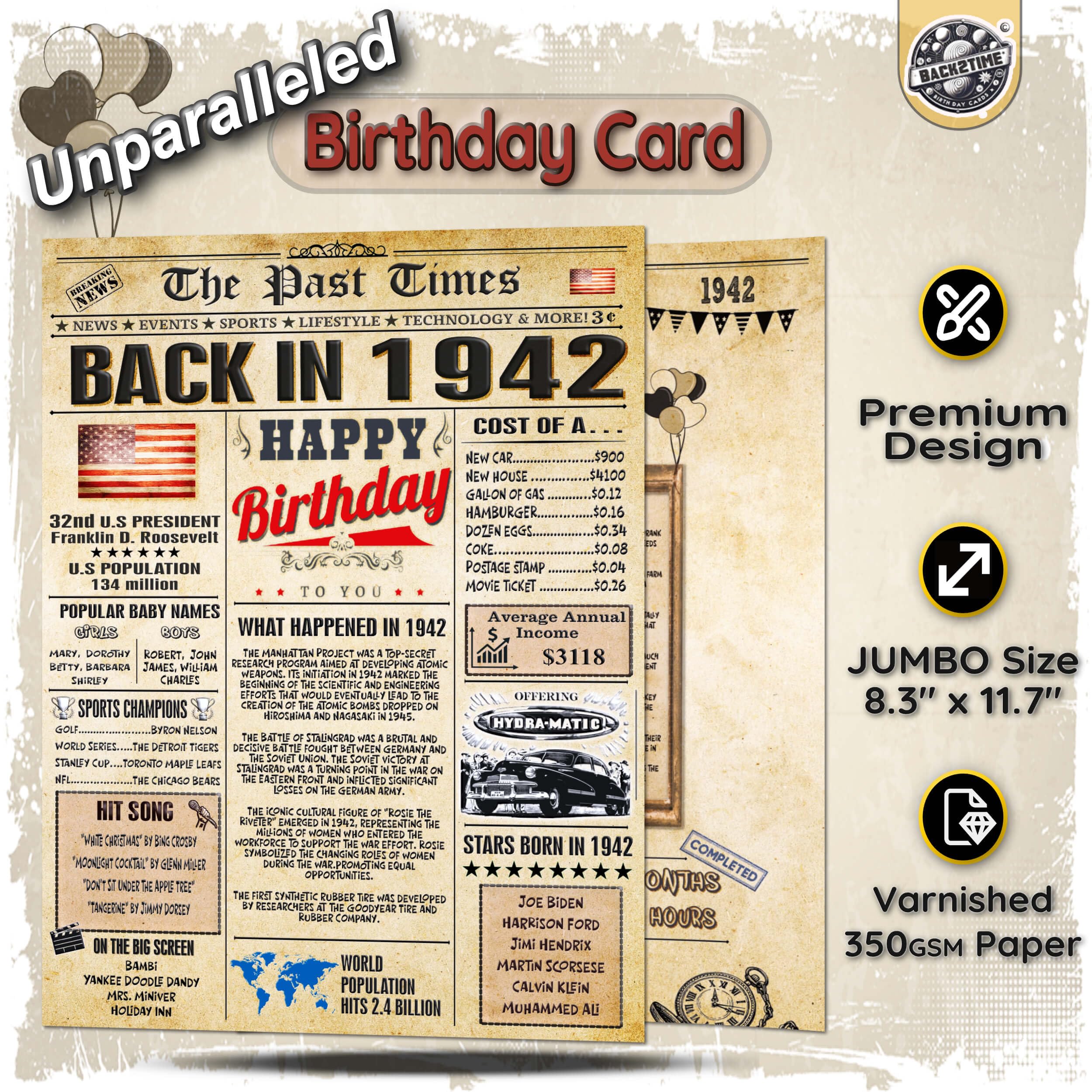 π FUNNY BIRTHDAY CARD + EXCLUSIVE ENVELOPE π Enjoy a beautifully printed Back in 1942 card that's entertaining to read, featuring a special bonus on the back with intriguing stories or lesser-known facts from that year. The interior offers space for personalized messages, designed with an aged appearance and elegant decorations to enhance the vintage feel. The included envelope boasts a unique design ideal for mom and adult born in 1942. Birthday Cards for Women, Birthday Cards for Men.