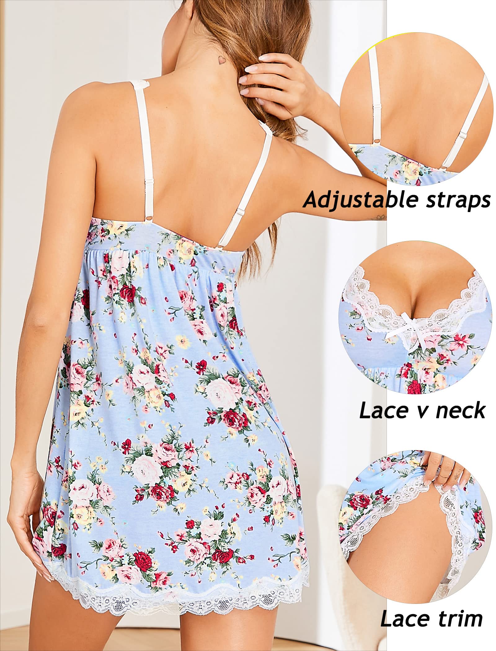 Design: Avidlove lace nightgowns featuring adjustable Spaghetti straps, V-neckline with bow decorate, Lace trims at neckline and hem, A-line silhouette hits at mid-thigh. Chemise sleepwear for women is super comfy and versatile, it can be a slip under your clothes, like coat or sweater, or wear to bed as a nightie, loungewear