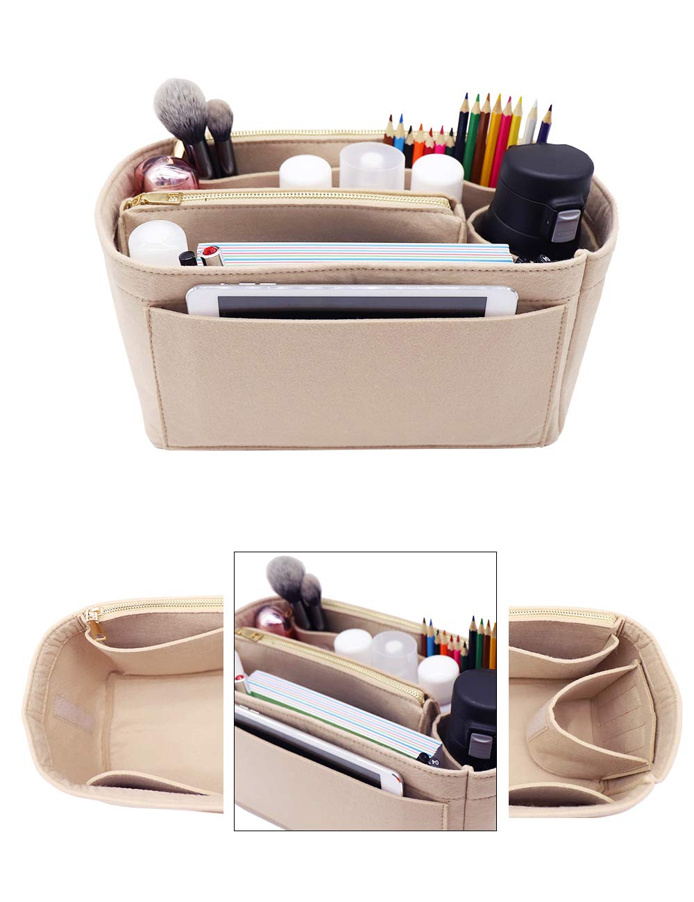 BETTER PROTECT:Felt Purse Organizer with High quality and New Materials are made of Sturdy ,Soft and pliable, Lightweight Felt fabric makes your purse a better protect.The Zipper of the organizer are made of Metal, Durable, Fashion and smoother sturdy and keeps your bag shape and shipshape.