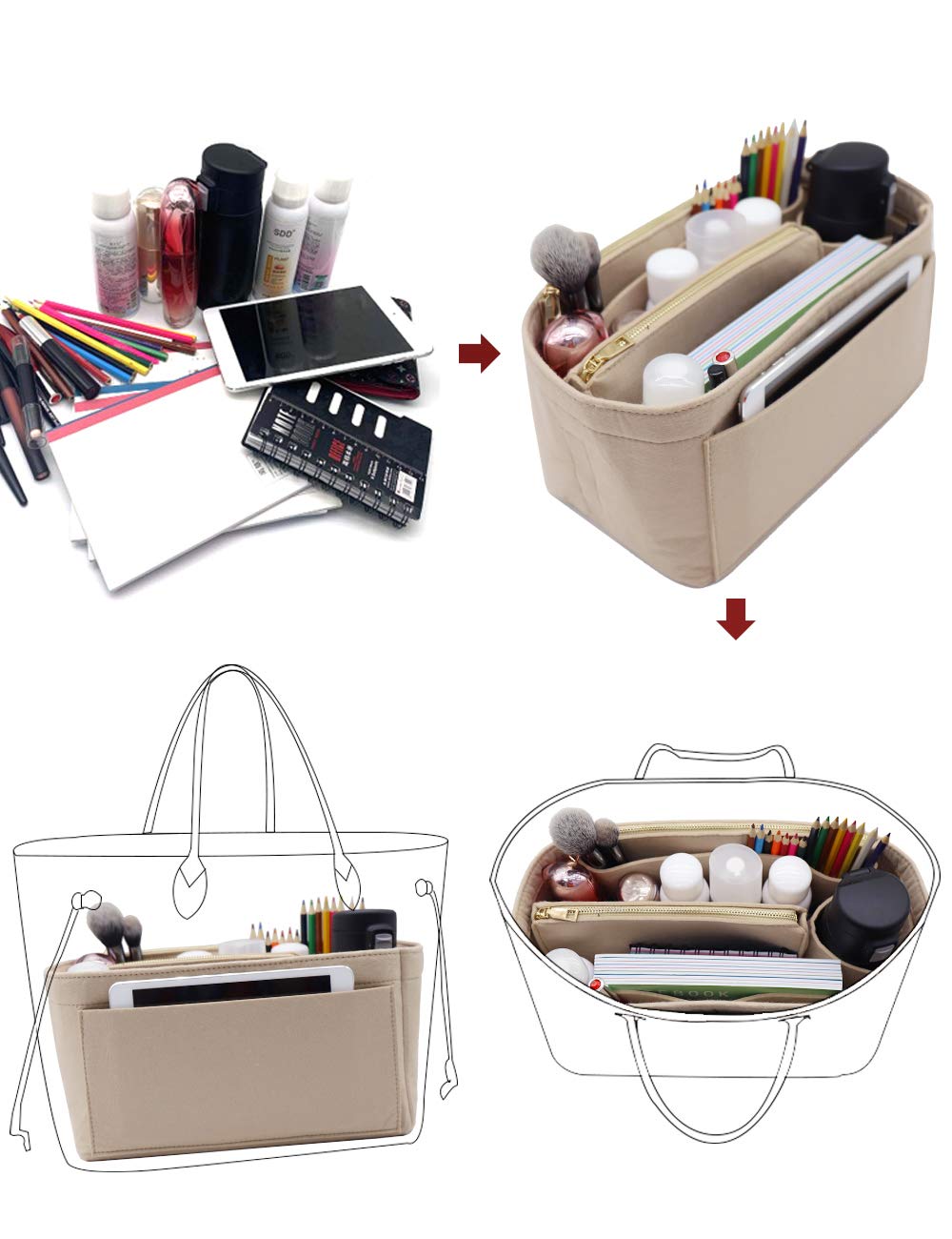 PURCHASE NOTES:Kindly Measure the Interior Length, Width and Height of Your Handbag with a Measuring Tape please. CHECK the SIZE CHART before PURCHASING IT PLS!!! Choose any color you like. Contact Us If Anything Comes Up And We Will Do Our Best To Get It Done In 24 Hours. We Guarantee 100% Satisfaction After-sale Service For This Item.
