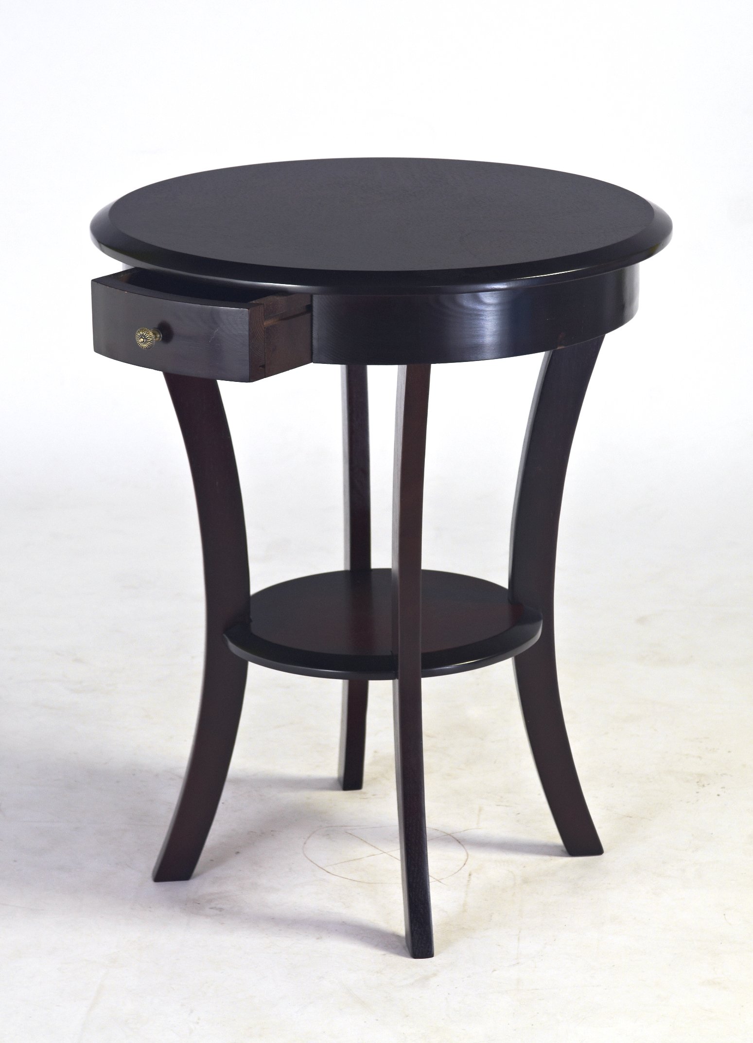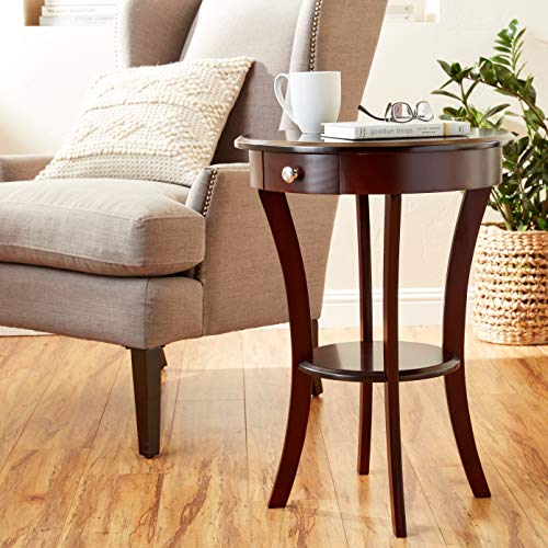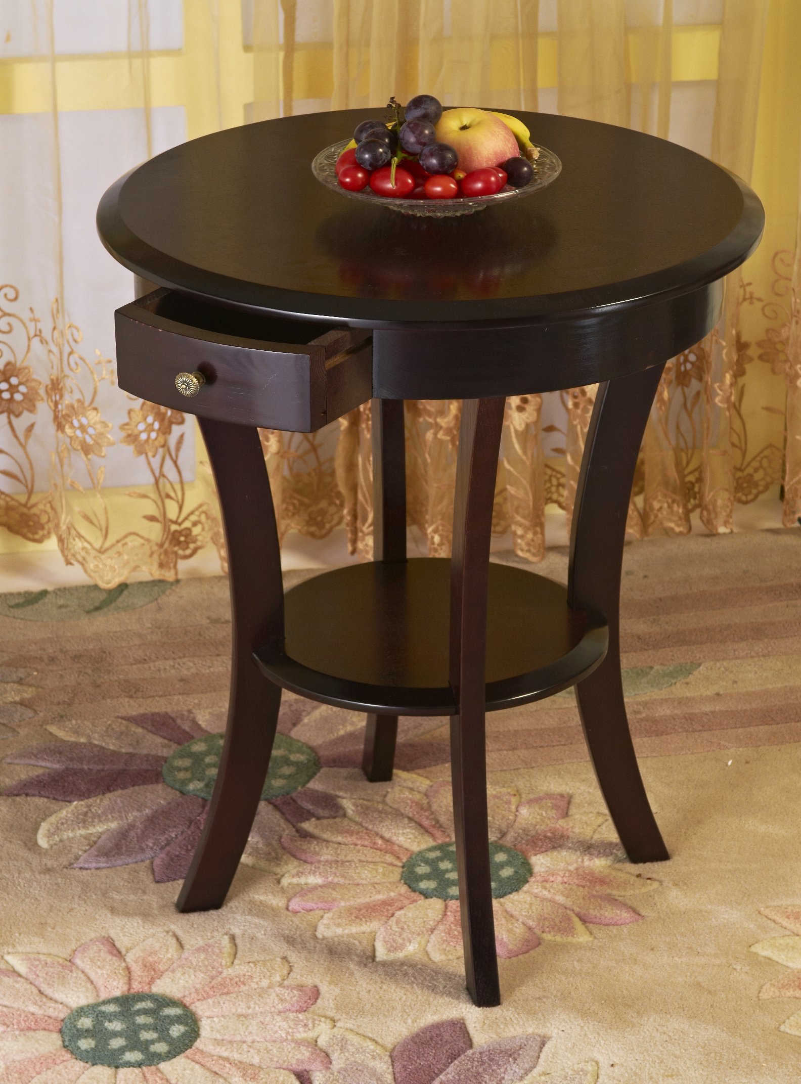 Frenchi Furniture Wood Round Table with Drawer and Shelf ,Espresso