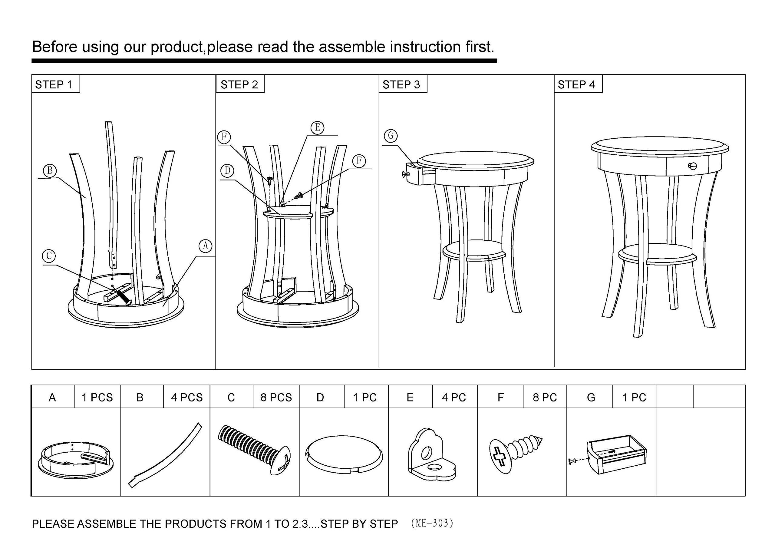 The table will blend easily with any room decor. It features elegant curved legs that further add to the beauty of this end table. Accentuate your living room space with this lovely round-shaped end table. The End Table is crafted of solid beech wood that ensures years of reliable use. The hardware material of this table is metal, which makes it very durable. Its lower shelf is a great place to keep a small vase or a potted plant. Along with a round bottom shelf, the table has a rounded drawer for added convenience. The table requires minor assembly.