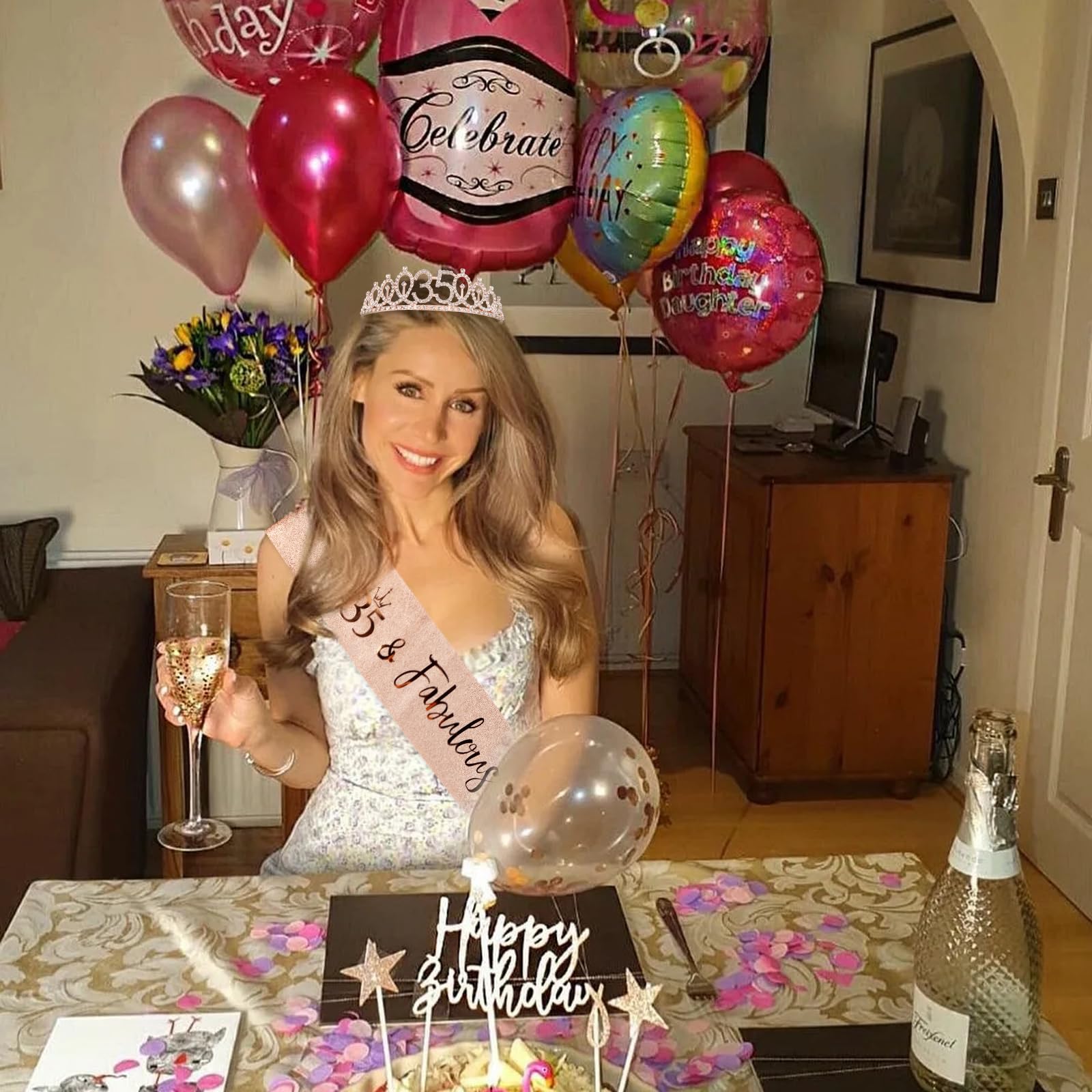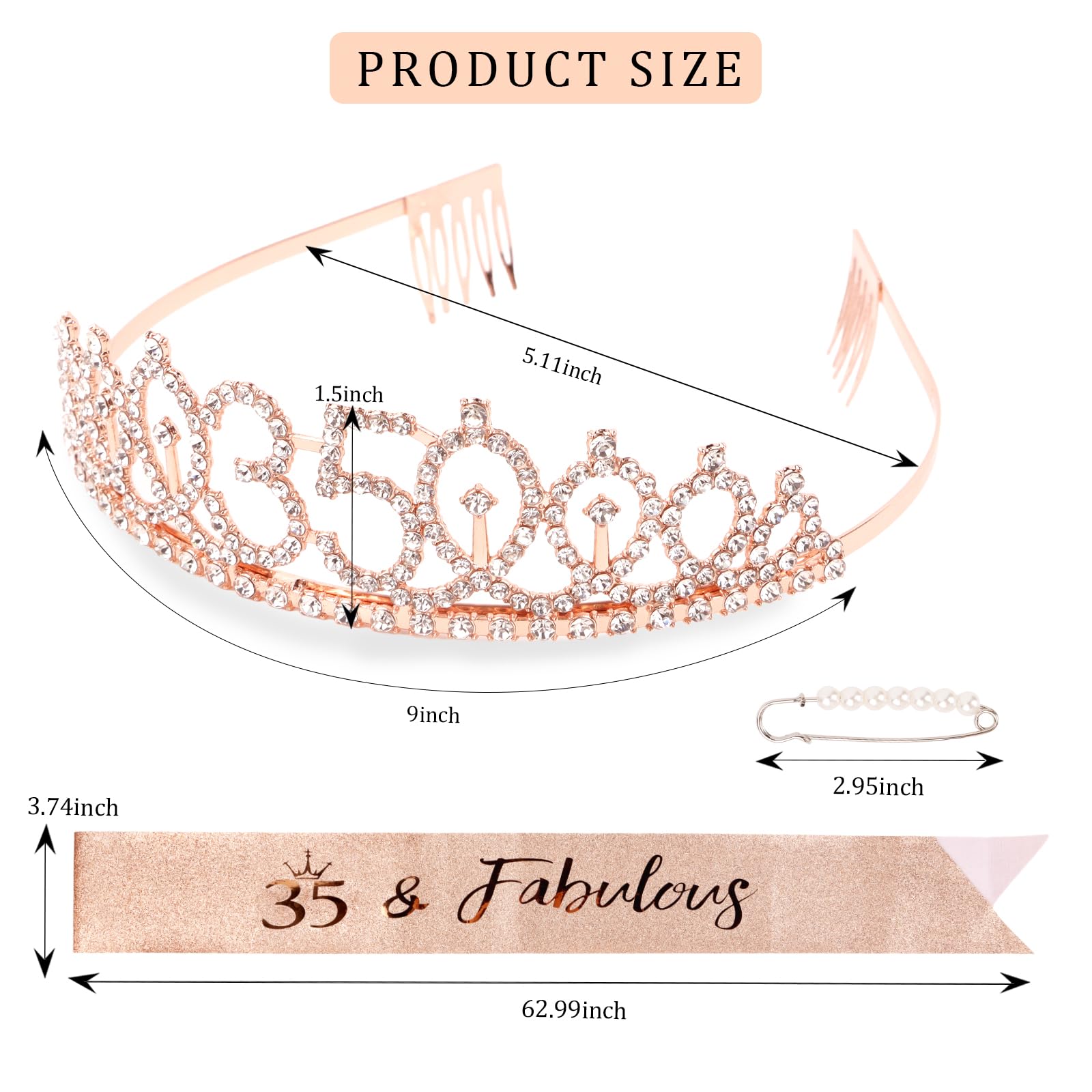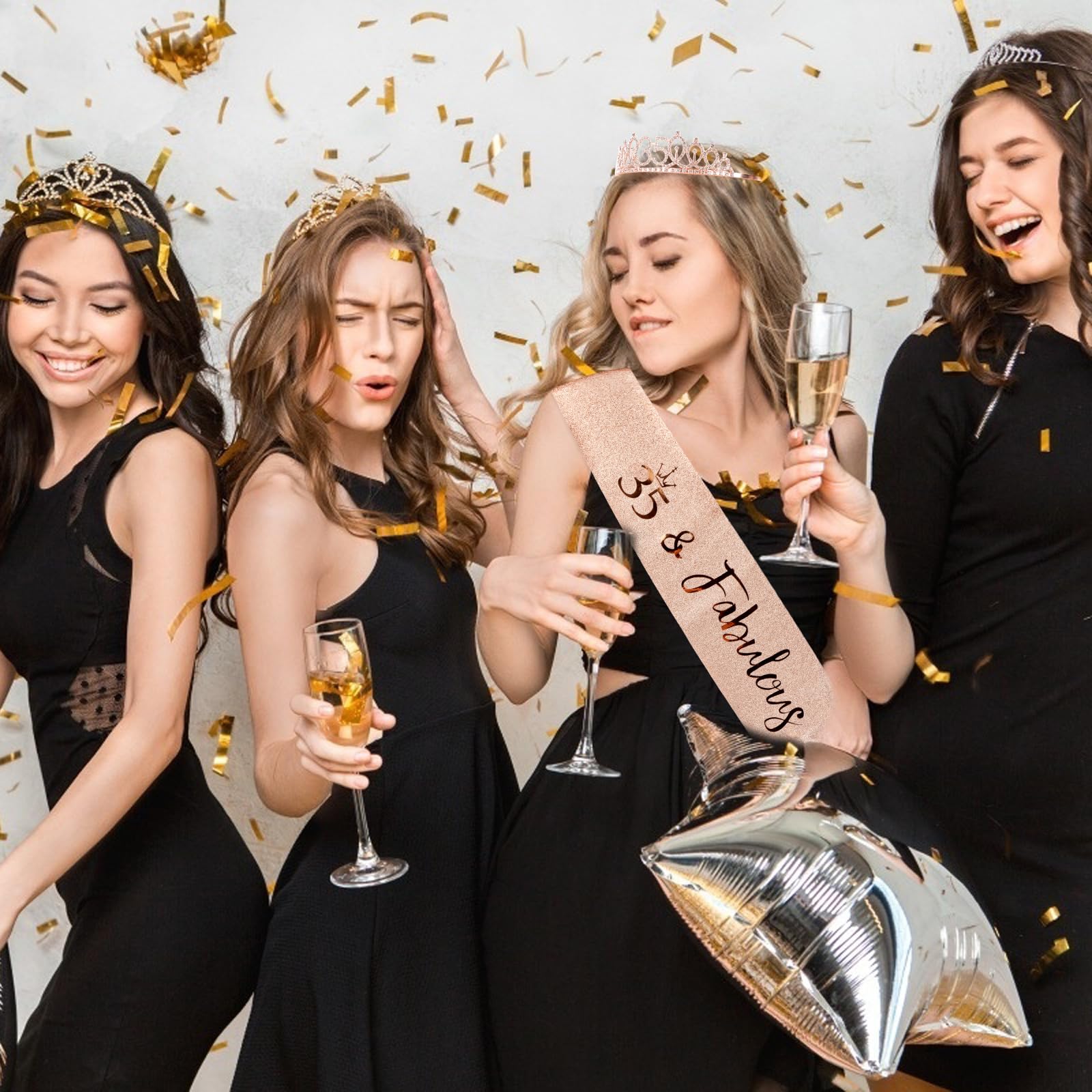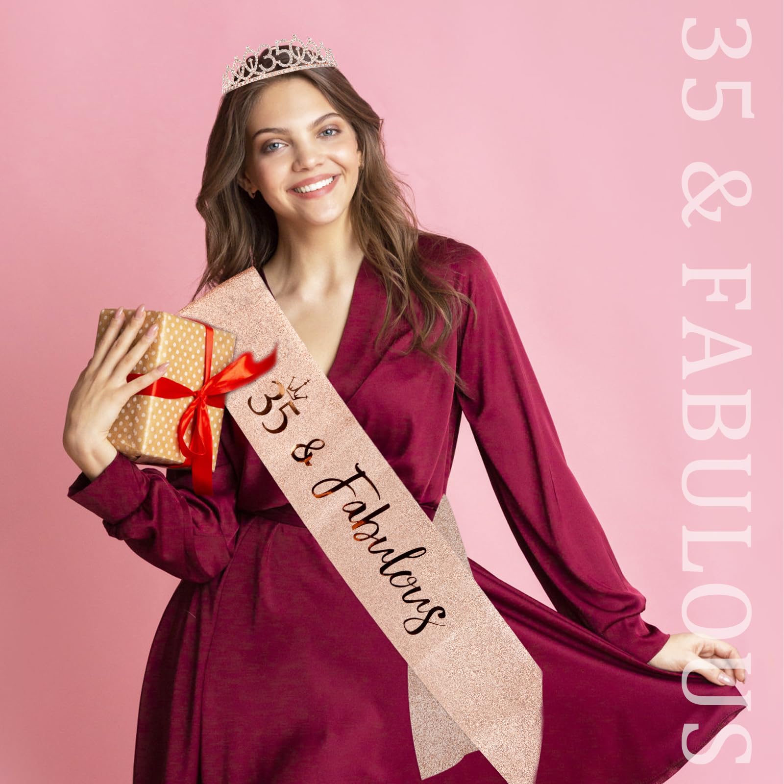 The Perfect 35th Birthday Decorations for Women: "35 & Fabulous" sash + rhinestone 35 tiara.