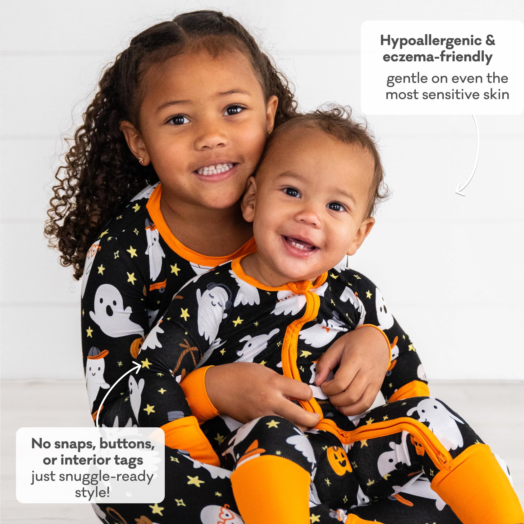 [Softest Halloween Pajamas Ever] Made from buttery soft custom-milled Lunaluxe fabric, our stretchy bamboo viscose baby pajamas keep your little pumpkins cozy all night. They’re the perfect baby Halloween pajamas for boys and girls