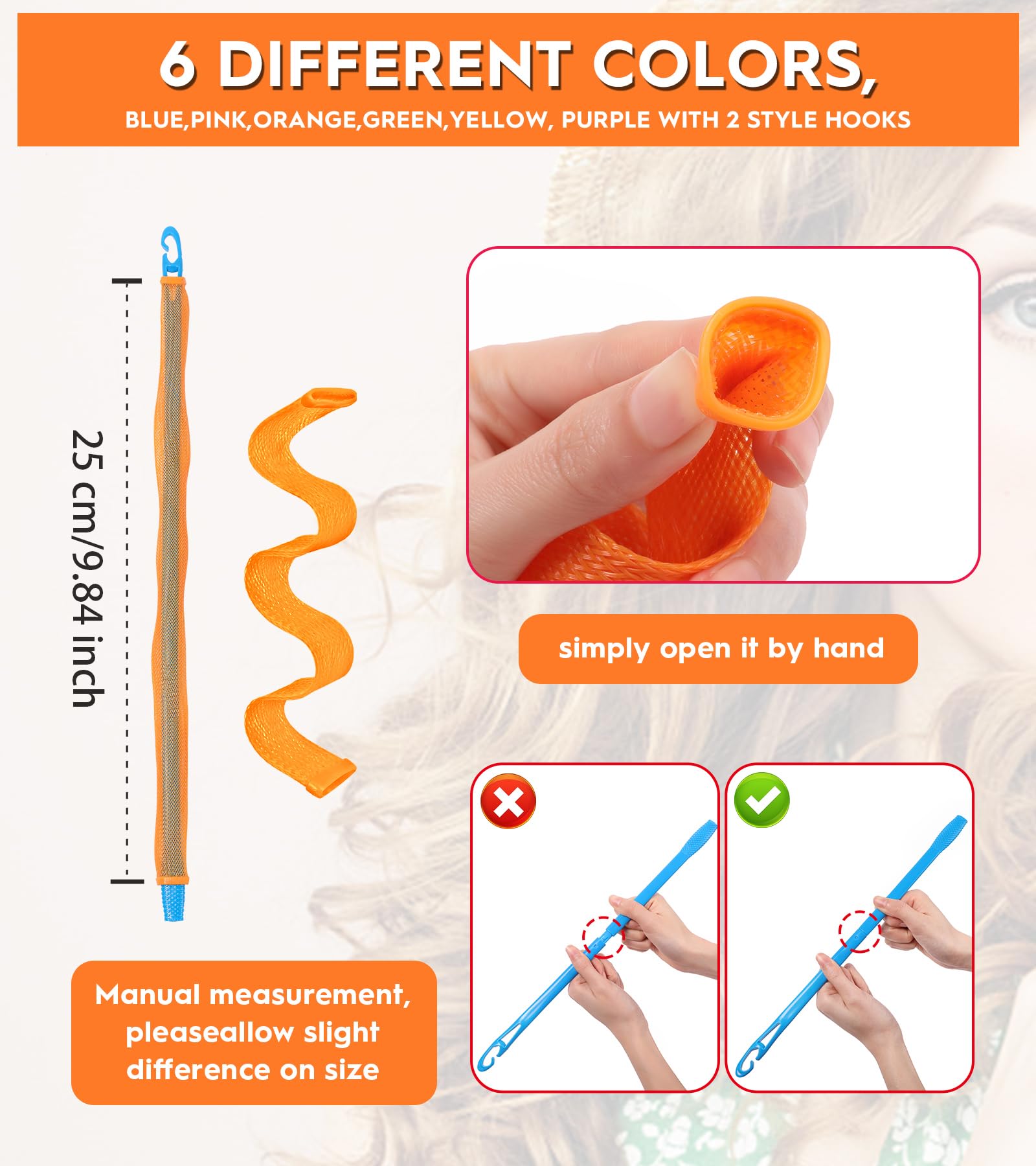 【Sufficient Quantity】You will receive 30 pieces of heatless wavy in 6 different colors including pink, blue, yellow, green, orange and purple, 5 pieces of each color, also comes with 2 styling hooks. Measuring 25 cm, 9.84 inch, enough quantity to meet your needs for everyday curls