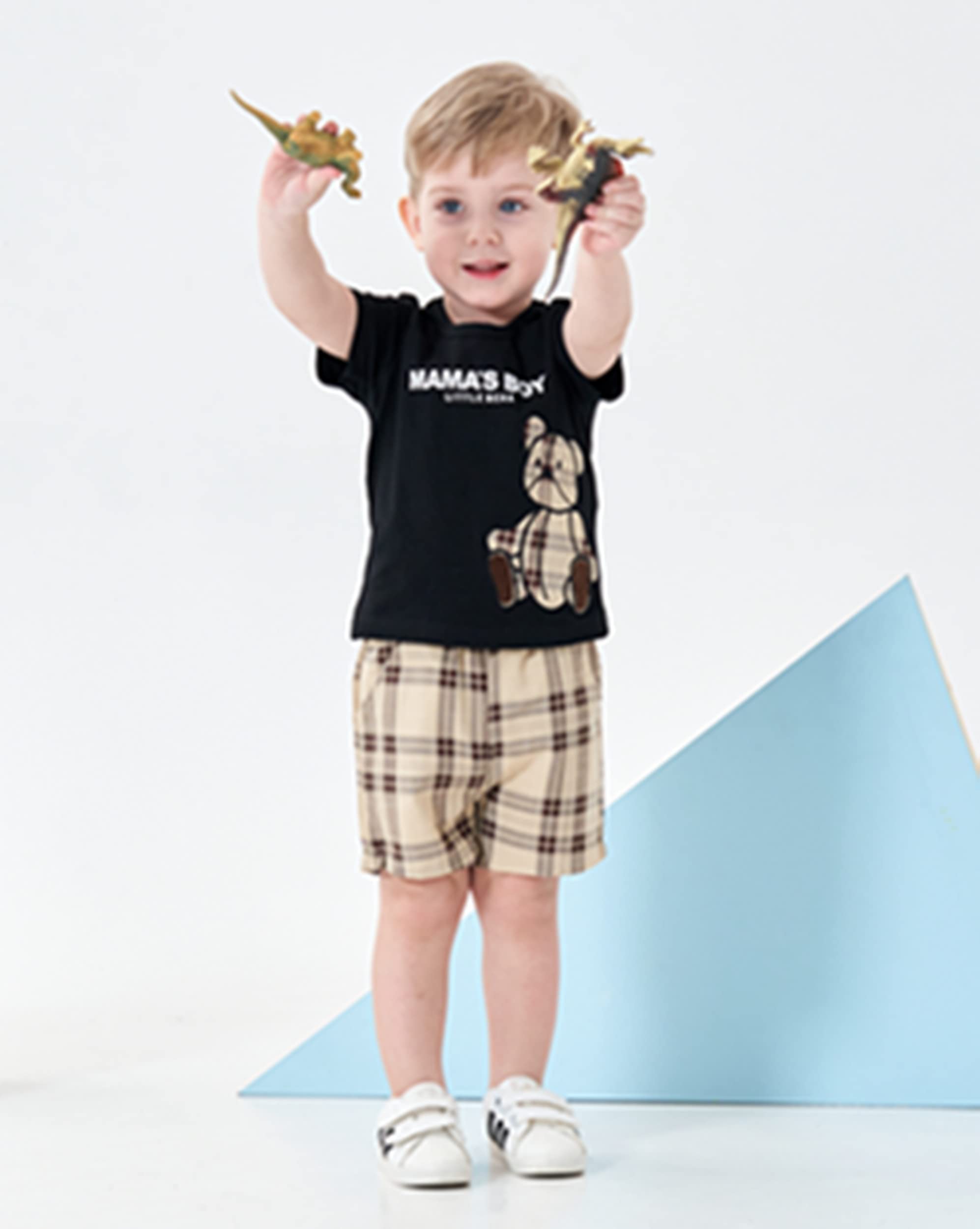 Package include: 1Pc *T-Shirt+1Pc *Shorts. Wash by hand or machine, air dry, not bleach. It Quick-drying, Didn't shrink and fade after washing, Durable and well made plaid shorts set for boys.