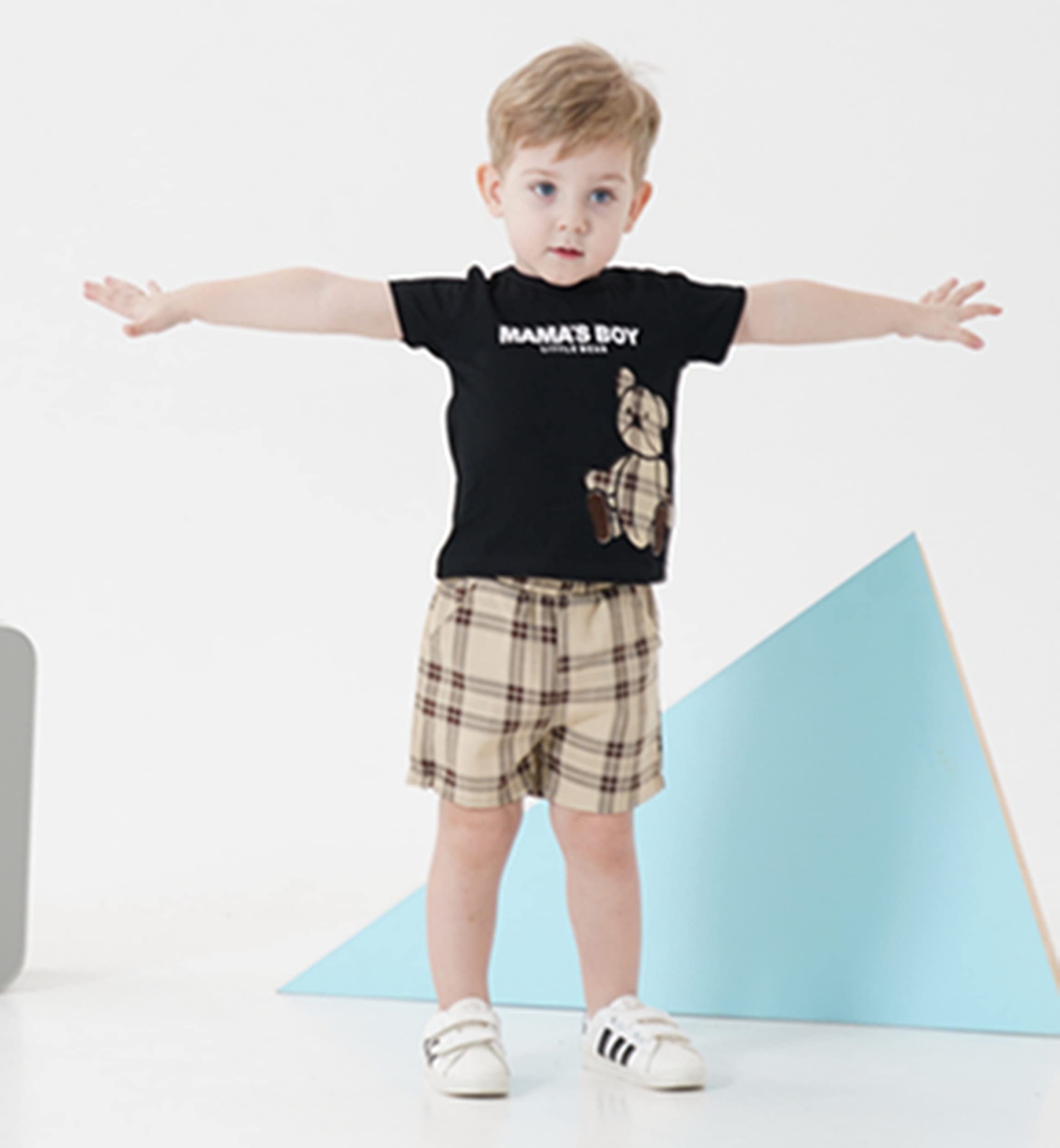 Stylish Design--Cute baby boy outfits with classic bear, cute and fashion to wear. Wide elastic waistband plaid short pants, neither tight nor loose, suitable for indoor or outdoor activities. Your little boy deserve to own one!