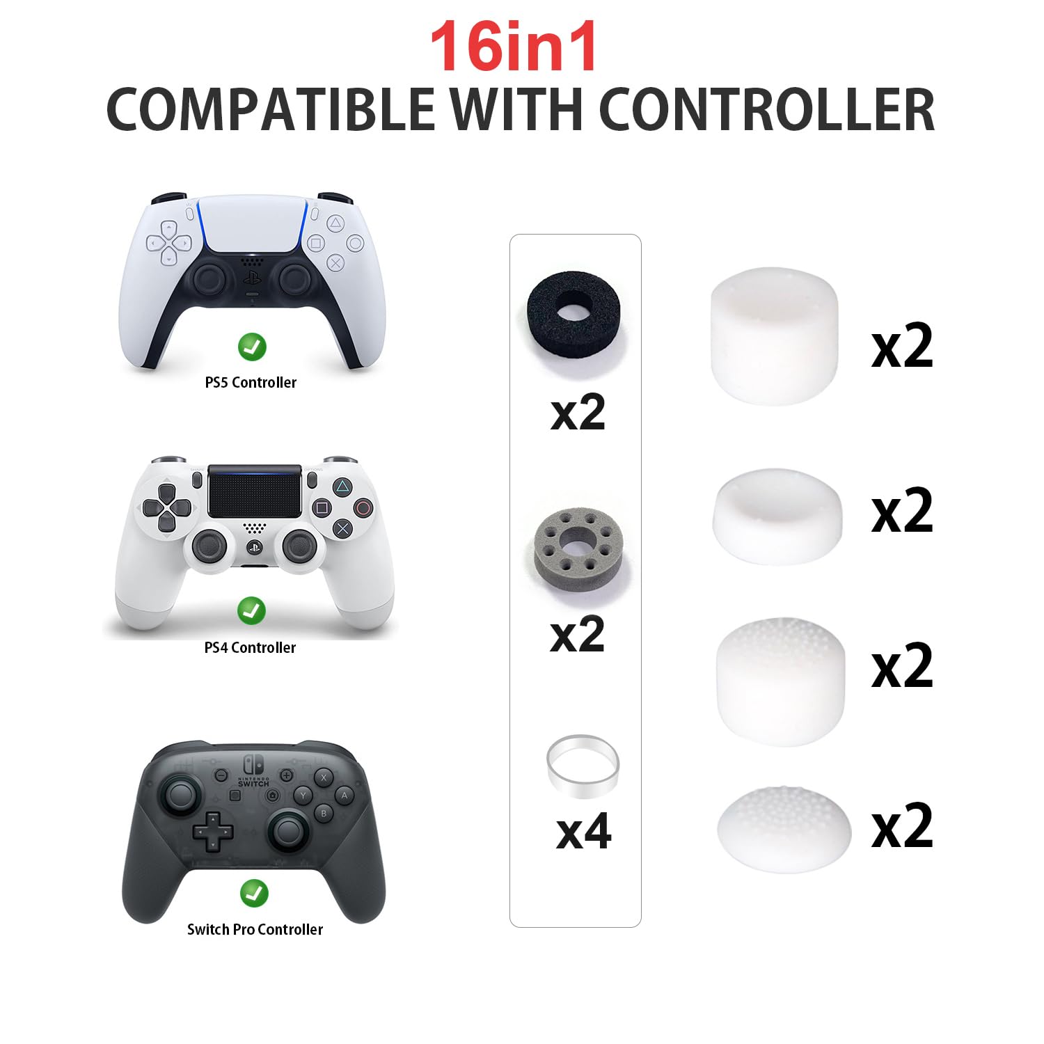 【4pairs thumb grips】4pairs of thumb grips that have completely different designs to meet gamers’ needs.