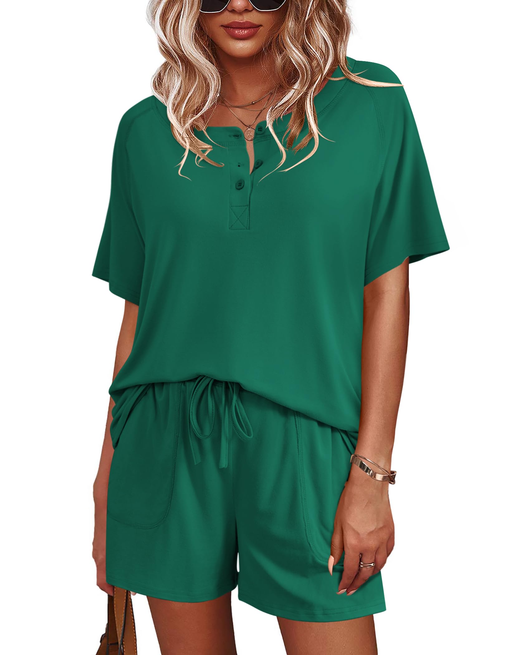 CUTE DESIGN: This women's sleepwear set with superior stitching, and perfectly lined hems, the fabric feels great on the skin. The cuffs are designed to be ruffled short sleeves to show more cute and lovely. The PJs shorts with two side pockets for little things to take. Perfect for sleepwear, loungewear, and casual wear around the house.