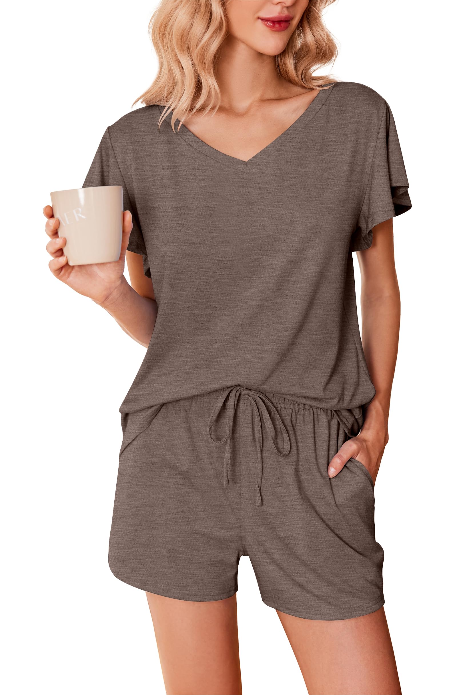 BEST GIFT: Drift off to dreamland in this lightweight and soft PJs short set with a cute v-neck short-sleeved pajama top and bottoms, and enjoy a cozy time at home. This ruffle short-sleeved sleepwear set can be a good gift for your girlfriends, mom, and friends.