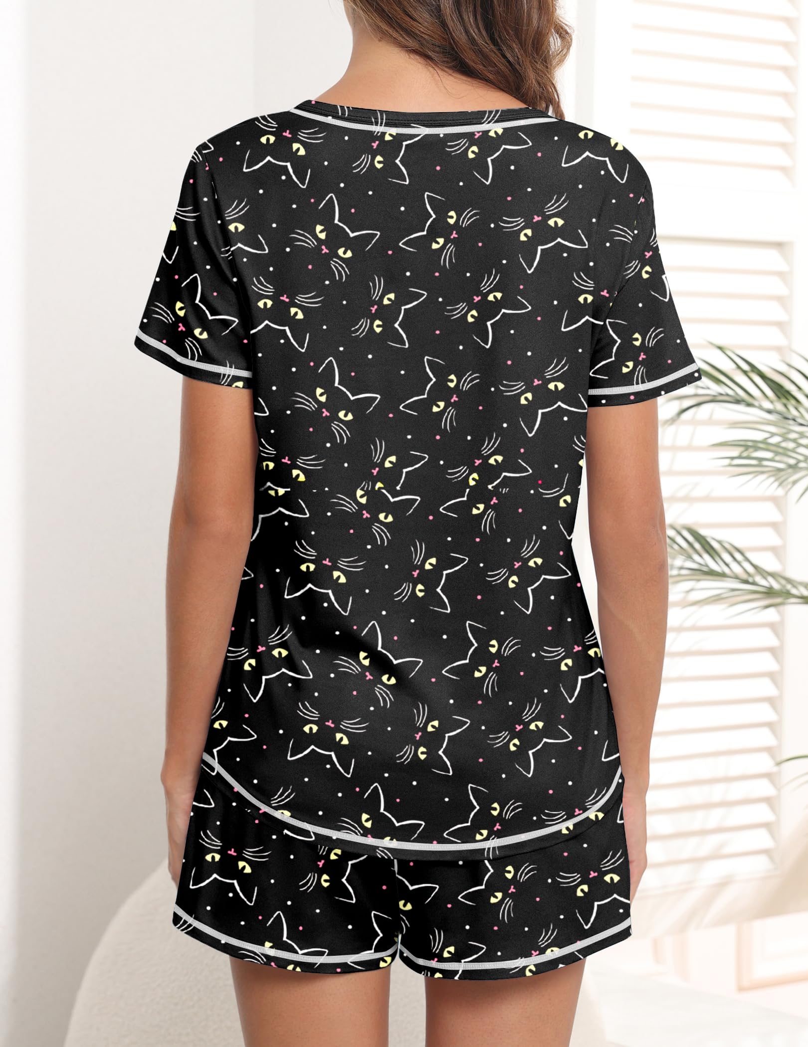 Design: The pajama top features classic chest pocket and V neck, with exquisite hemming workmanship; the pajama shorts features adjustable drawstring and pockets. Loose fit lounge sets, cute and comfy pajamas for women and teens girls