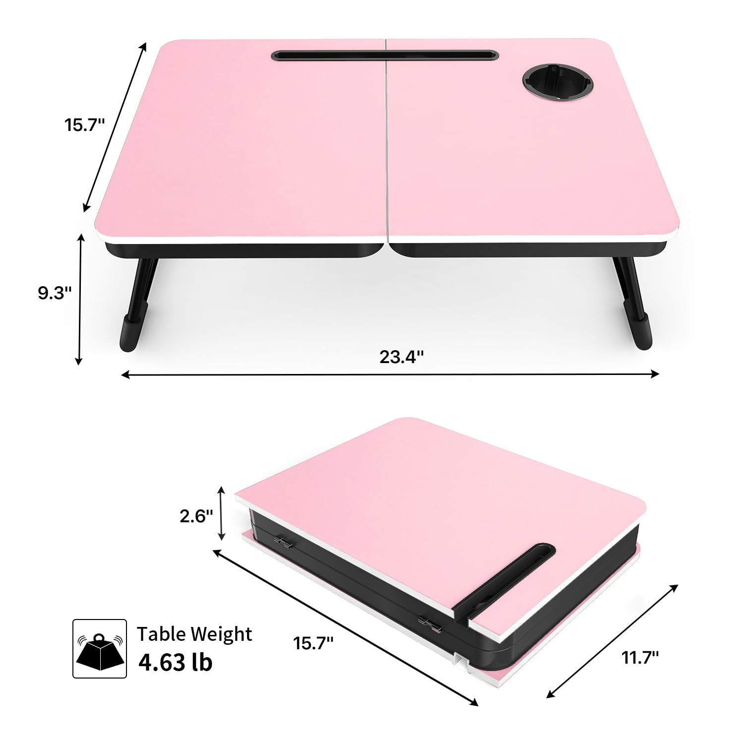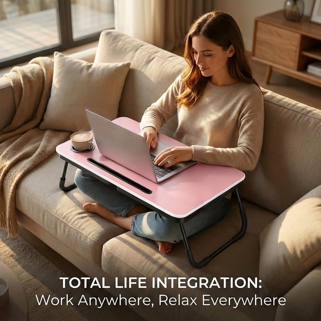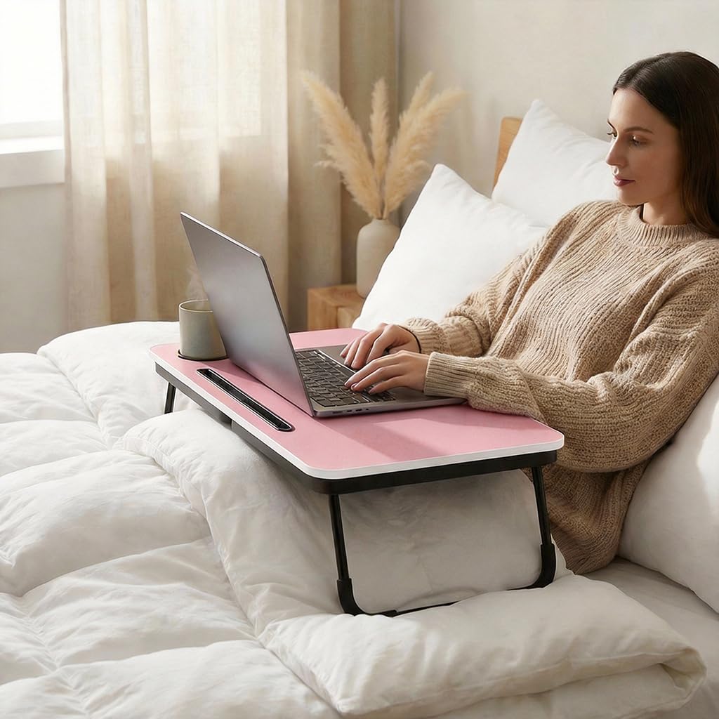 Foldable Laptop Table, Portable Lap Desk Bed Table Tray, Laptop Stand with Cup