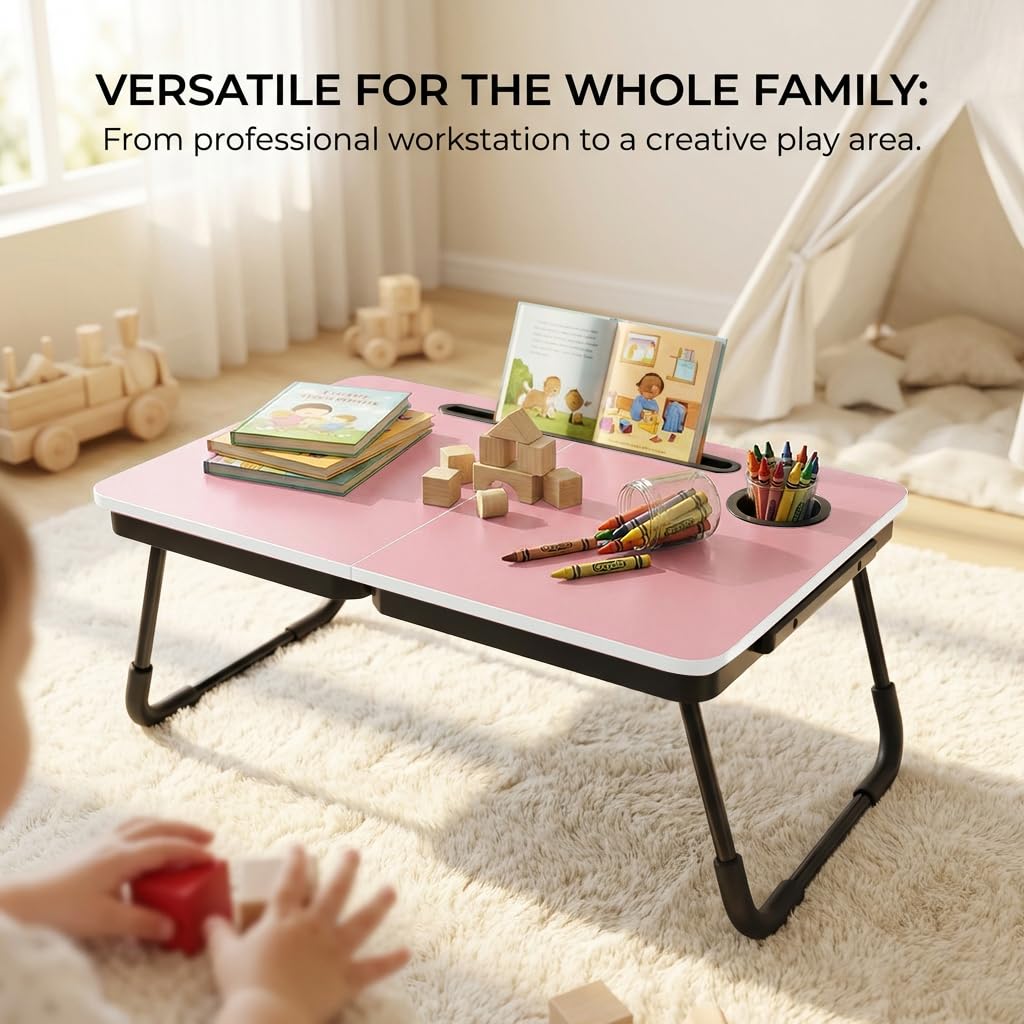 PRE-ASSEMBLED and COLLAPSIBLE: Zero installation needed—unfold and go. Engineered for compact living, this lap table folds flat instantly, offering a hideaway storage solution behind doors or under furniture.
