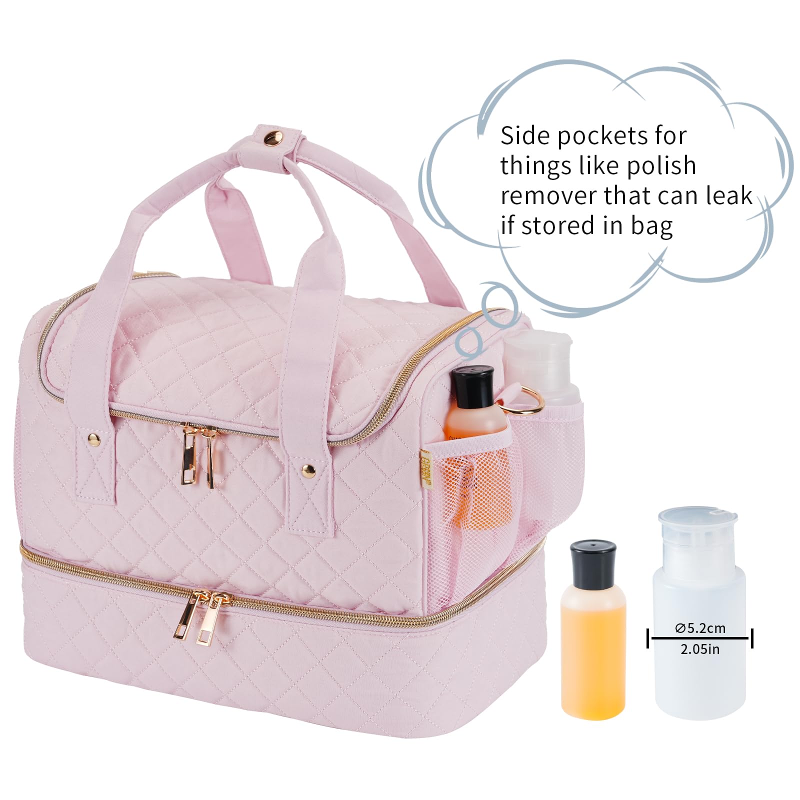 【Practical and Durable】The nail organizers and storage designed with 2 side pockets for things like polish remover that can leak if stored in bag,makes the bag more practical.Meanwhile,the nail polish case organizer is made of water resistant quilted peach skin material,thickened polyester lining and upscale hardwares,so it is sturdy and durable enough for many years to come.