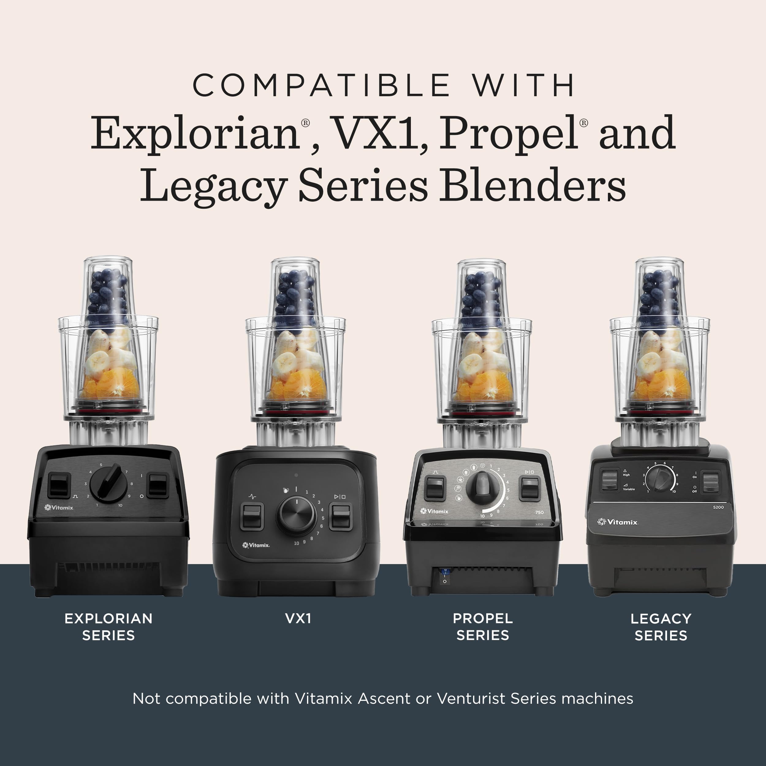 Compatibility: Designed only for Vitamix full-size blenders without wireless SELF-DETECT technology, including classic models like the 5200, VX1, Explorian Series, Propel Series, Alta Pro, 5300, 6300, 6500, 7500, 780, Aspire Series, Certified Reconditioned Professional Series 750, Creations Series, Professional Series, Total Nutrition Center, TurboBlend Series; Not compatible with Vitamix Ascent or Venturist Series machines