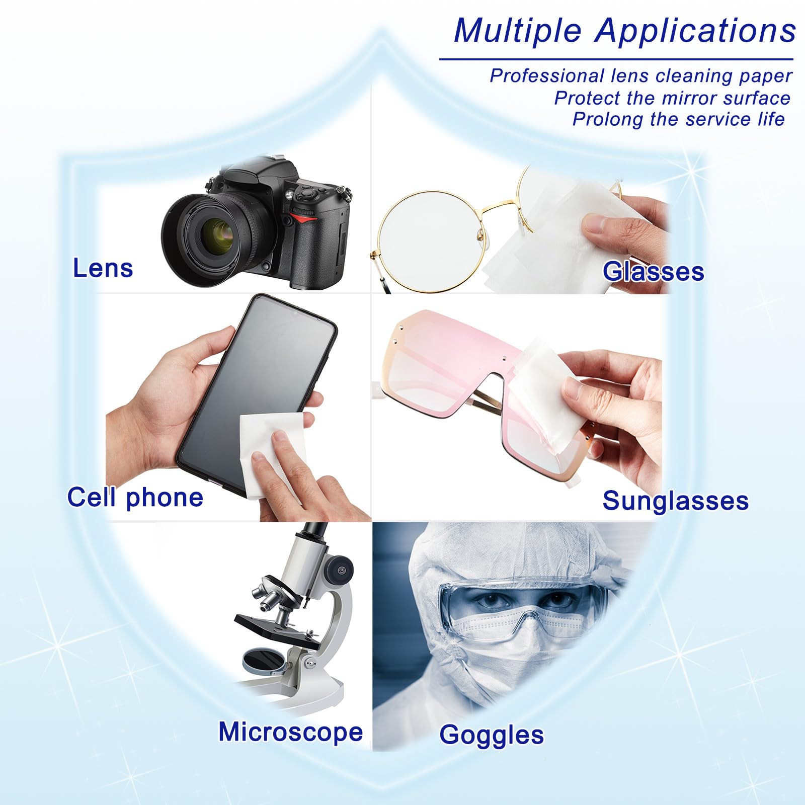 Wide application: our cleaning paper tissues are suitable for cleaning camera and camcorder lenses, telescopes, magnifying glasses, microscopes, digital cameras and other precision optics and no harm to the coated lenses; Dry lens cleaning tissues can effectively remove dirt, grease and fingerprints