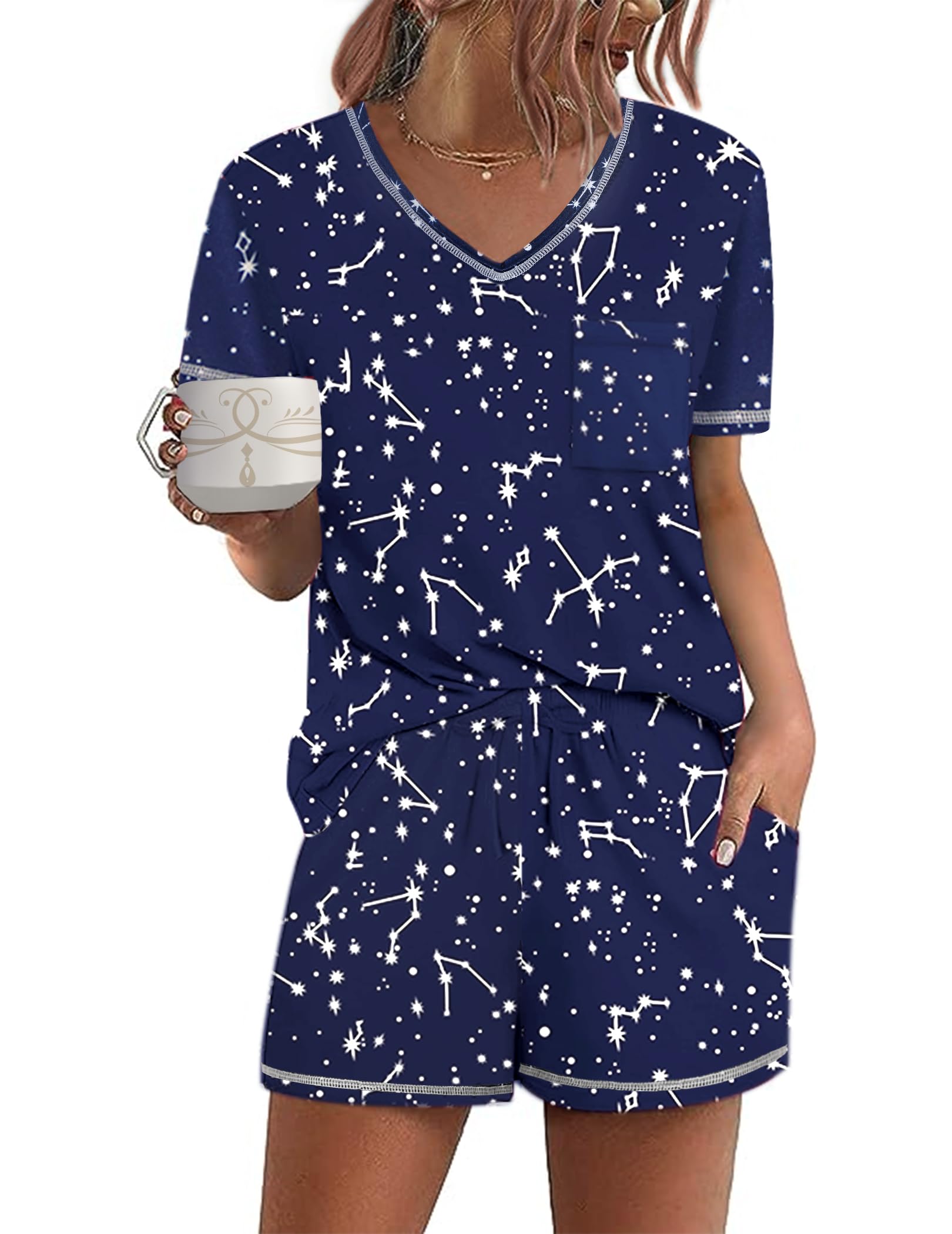 Short Sleeve Tops: Sleep shirt features round collar and chest pockets. Classic and convenient designs make this pjs sets more stylish and unique. Great nightwear, loungerwear that feels incredibly comfy and keeps you cool during hot nights