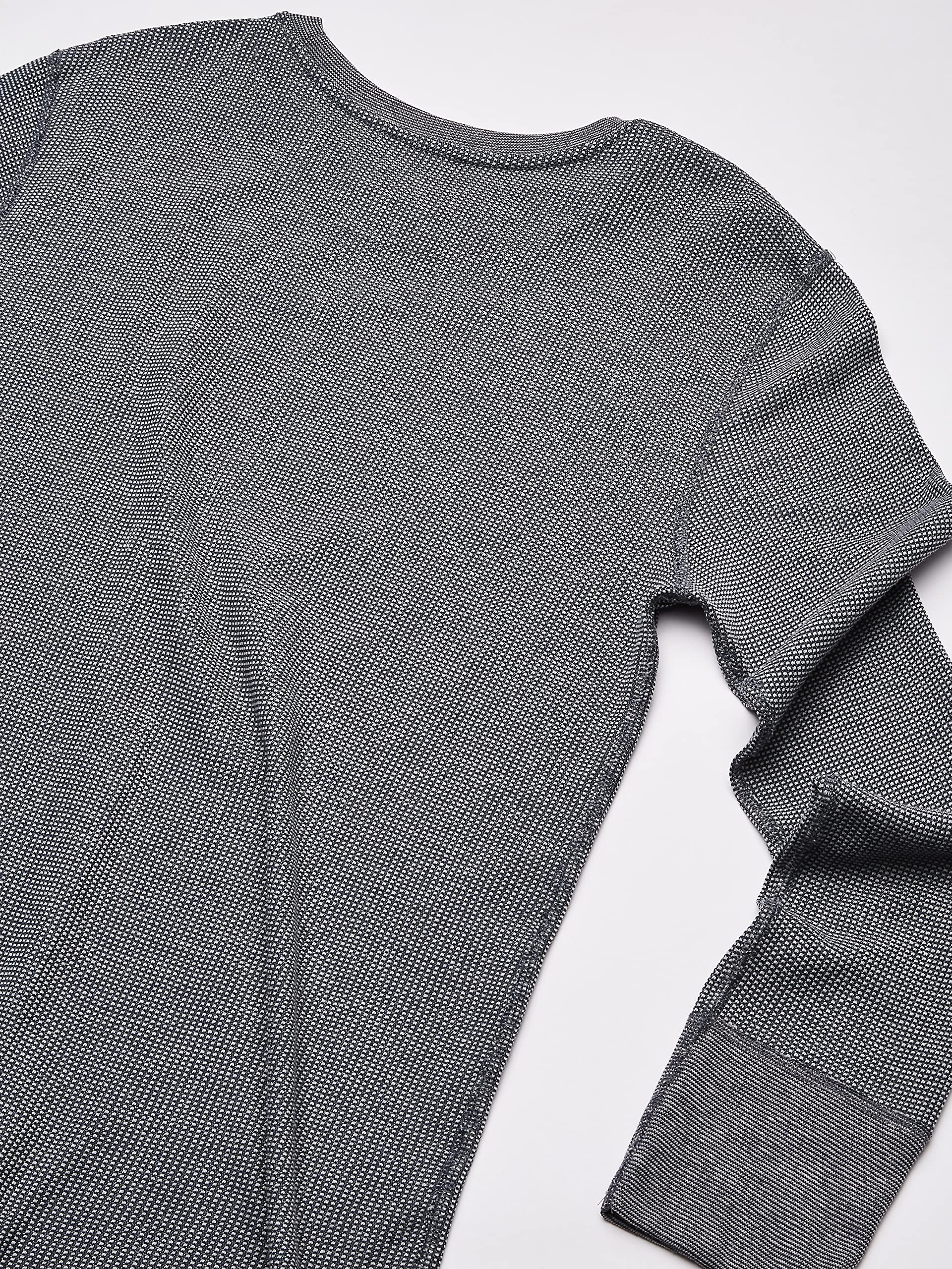 Soft mini waffle fabric thermal long sleeve crew neck t-shirt made from U.S. sourced cotton and recycled polyester