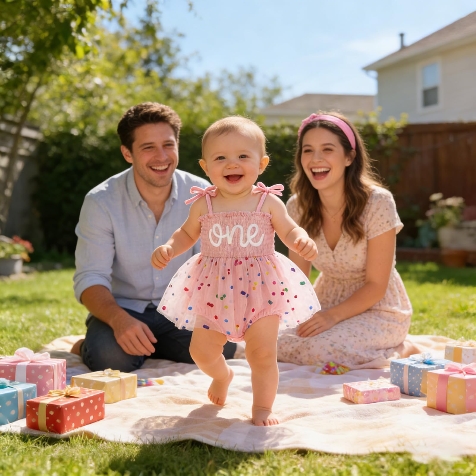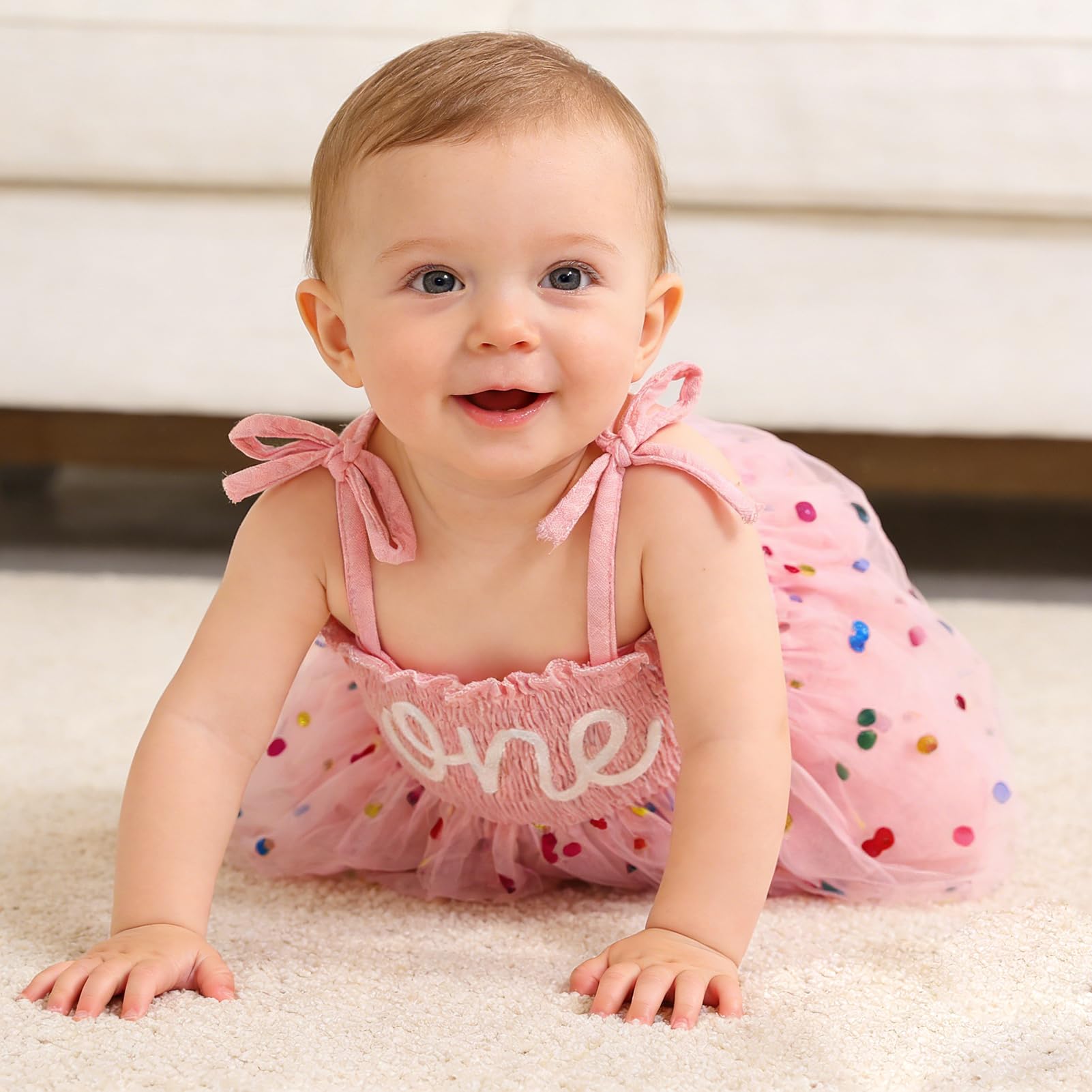 Occassion: Baby girls princess 1st birthday clothes is a best choice for 1st birthday party. Baby rompers girl tutu dress suitable for many occasions, such casual, family parties, one birthday party, baby photo, baby shower gifts, festival, summer daily life etc.