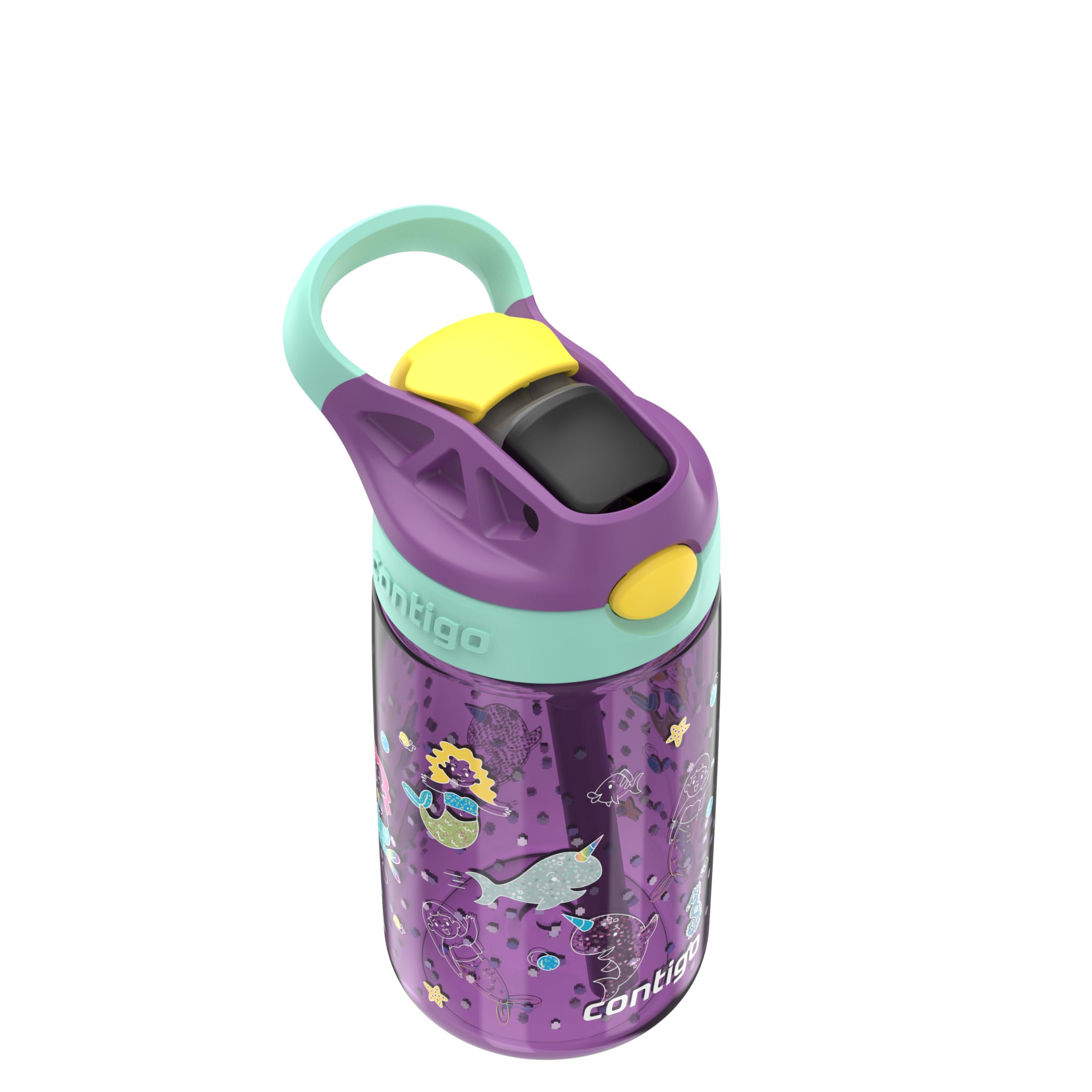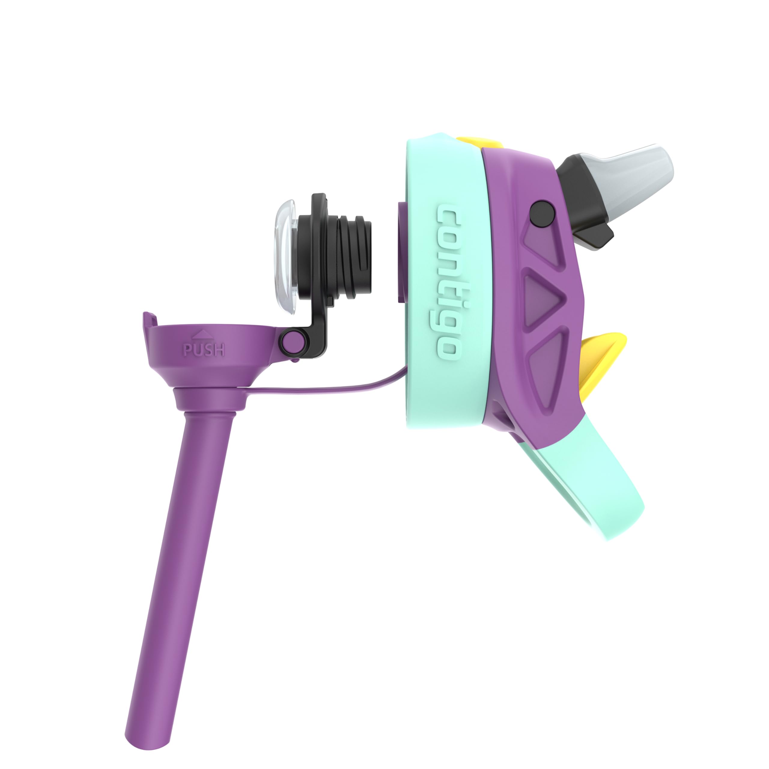 Fret no more, the Contigo Kids AUTOSPOUT Straw Water Bottle with Easy-Clean Lid has come to the rescue! Kids get a kick out of pressing a button to open the pop-up straw for effortless one-handed drinking, and they can easily push the spout under the cover to protect the mouthpiece from the elements. Adults appreciate that the straw features a spill-proof valve so car seats and tables are safe from spillsβeven if little ones hold the bottle upside down. When it's time to clean up, youβll be happy to know that all parts are top-rack dishwasher-safe, the lid easily disassembles for full-access cleaning, and the lid is designed to eliminate all nooks and crannies in which dirt and grime might accumulate. Rest assured, your new water bottle comes with a lifetime guarantee and is made with FDA-approved, BPA-free materials that wonβt give off plastic odors or tastes. For ages 3 and up.