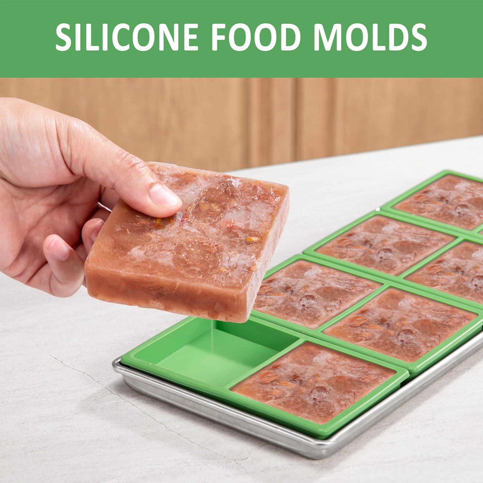 【Form Paste Food in same size】Silicone trays for freezer can make your paste food in uniform size after freeze drying. Easy to store and uniform look