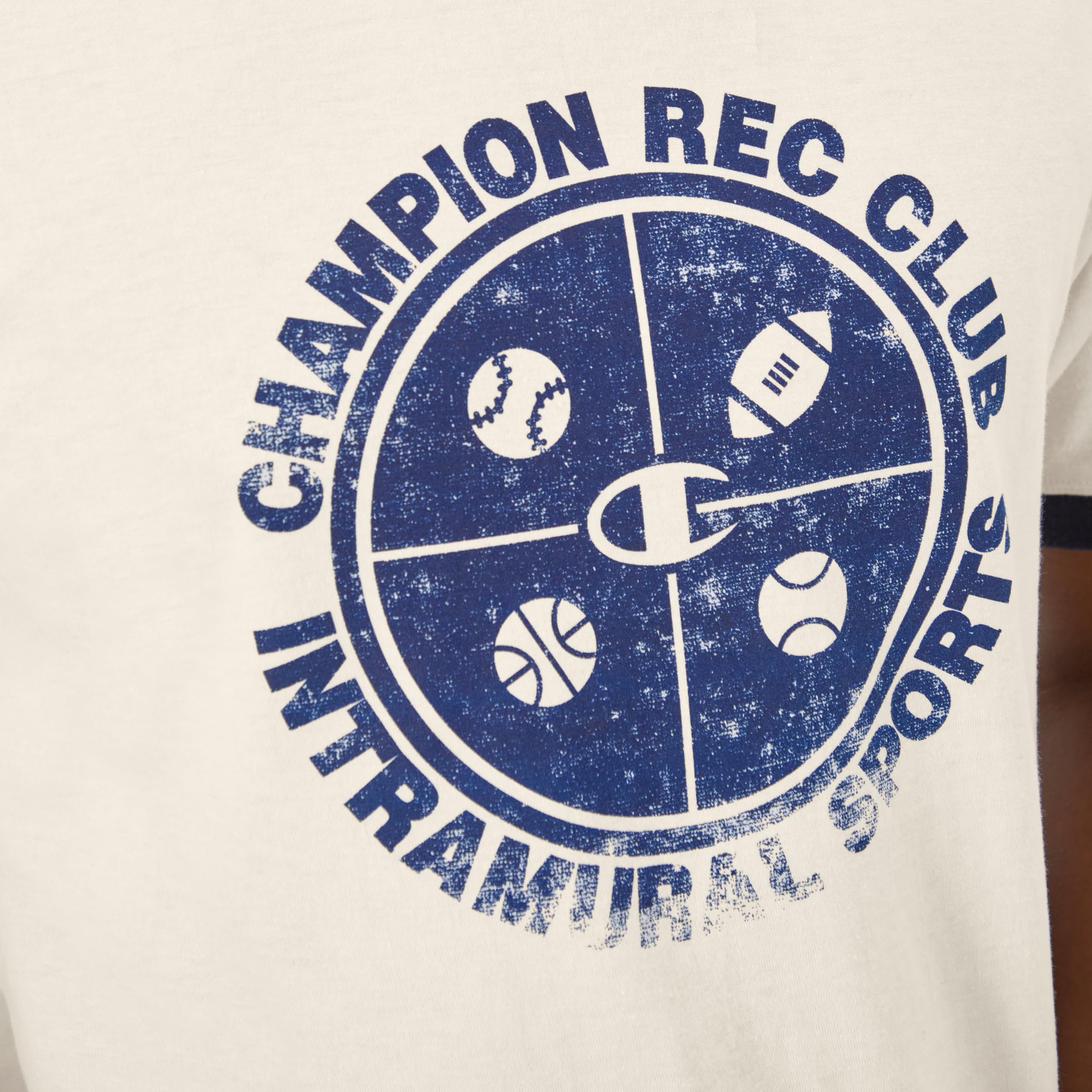 THE GRAPHIC - Contrasting sleeves and collar with a Champion Rec Club Intramural Sports graphic for a vintage look.