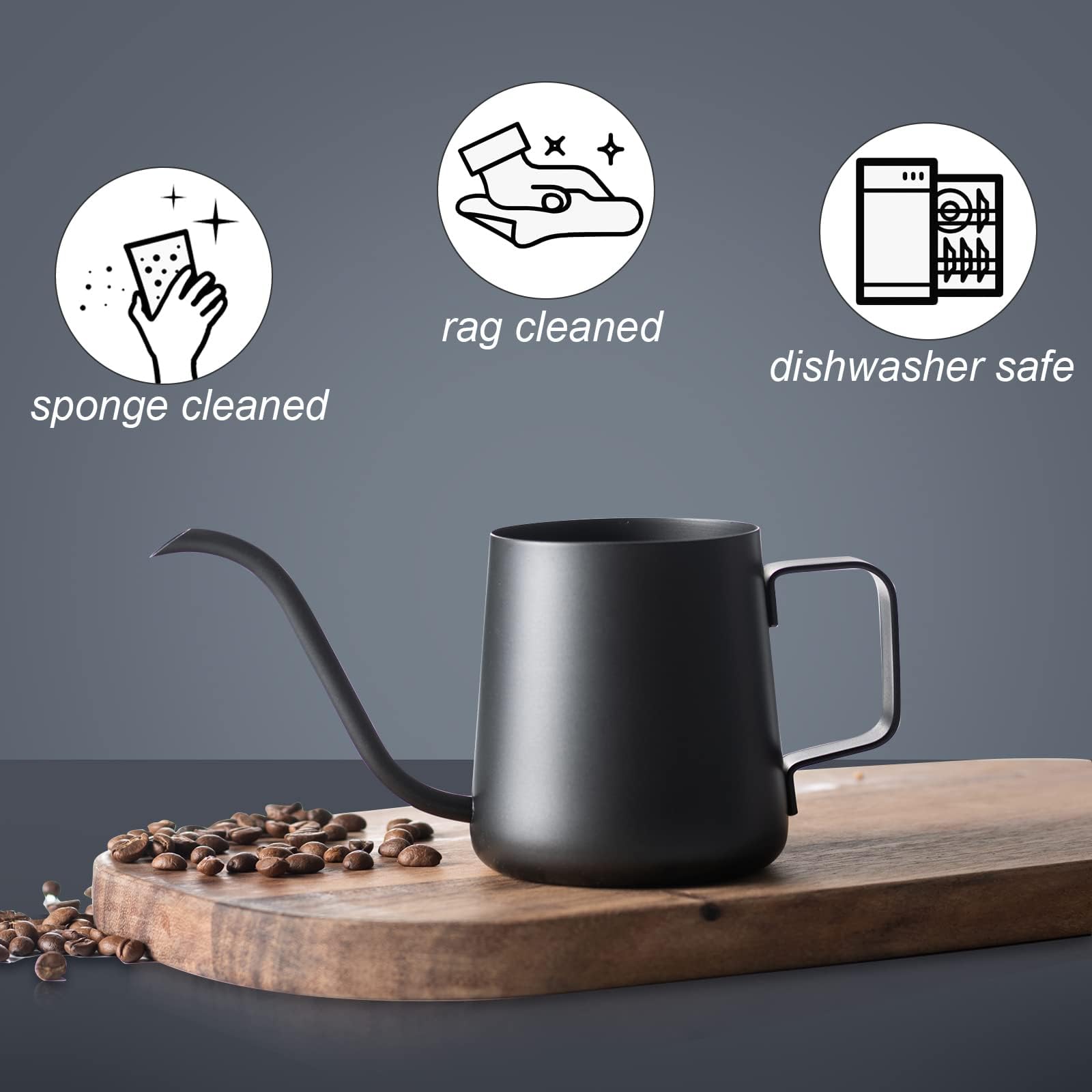 【Perfect size for a cup of coffee & tea】With the capacity of 350ml/ 12oz and portable size, this small pour over coffee kettle is perfect for daily use and does not take too much space to store. Great drip coffee maker helper for a perfect cup of coffee!