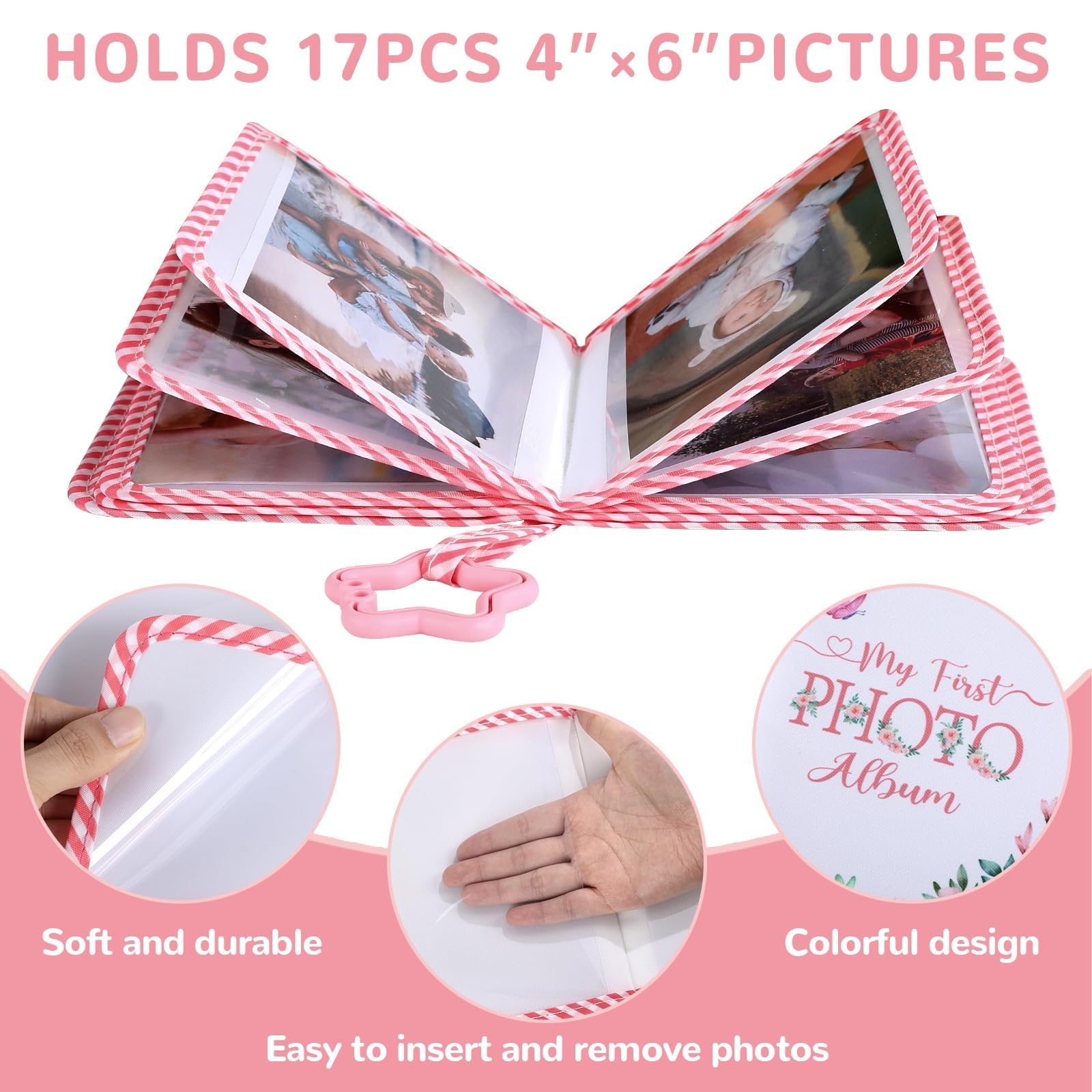 Super value pack: This first family photo album is designed to hold up to 17 sheets of 4x6 inch photos, making it the ideal baby photo album to capture your little one’s milestones. With secure hooks for hanging and a small mirror on the back, it's a delightful addition to your floral baby scrapbook collection.
