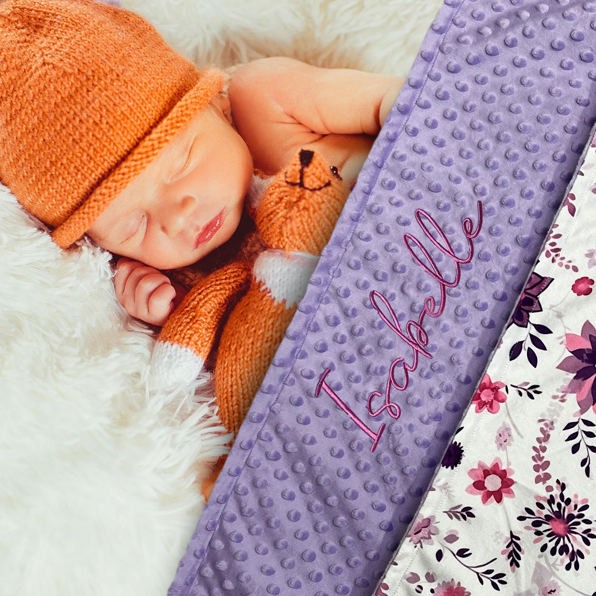 Personalized Embroidered Blanket: Add a personal touch and customize this minky baby blanket with your babyβs name! Donβt worry, the name is embroidered with care in a matching color of your choice for a touch of cuteness and fun!