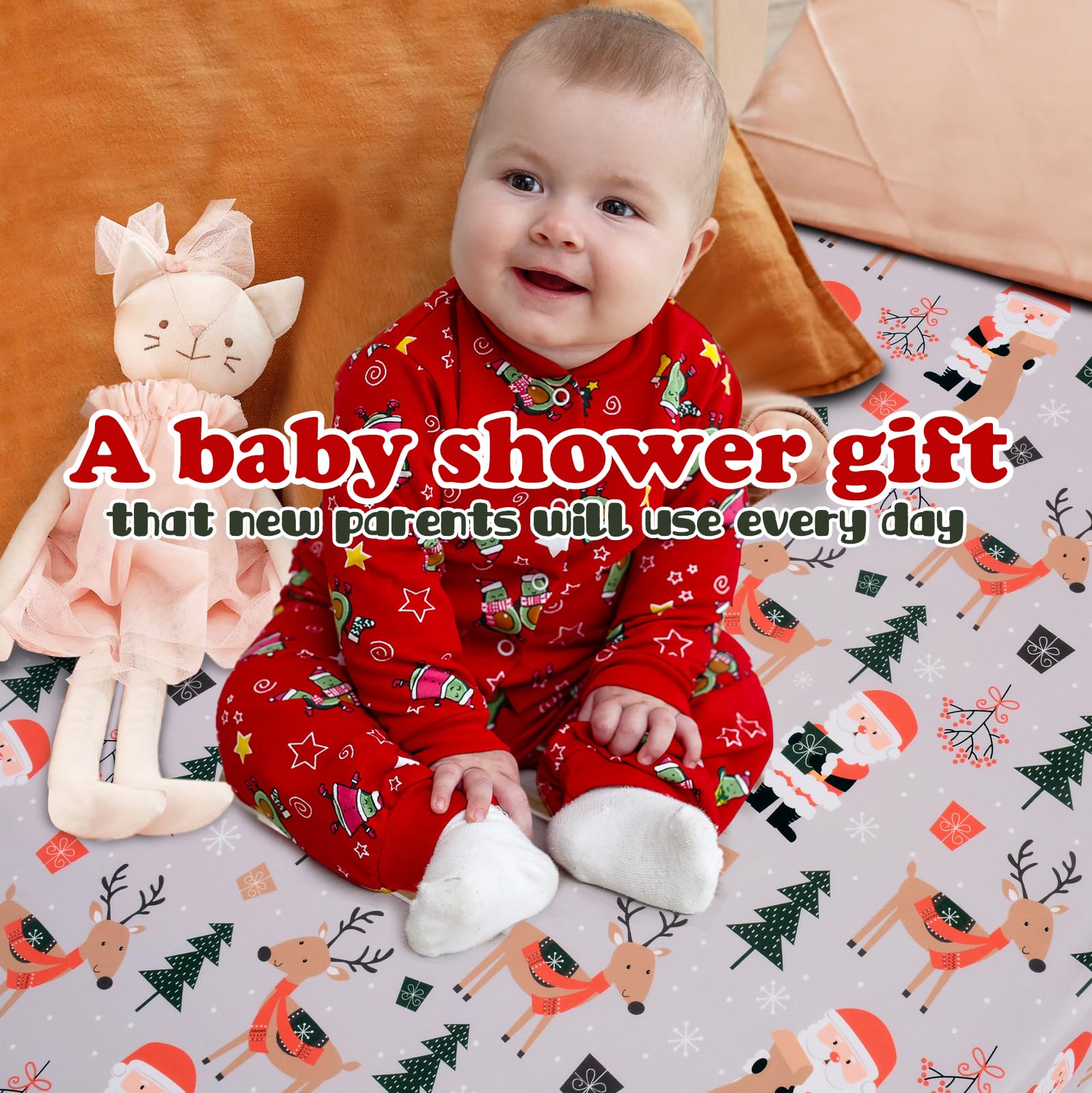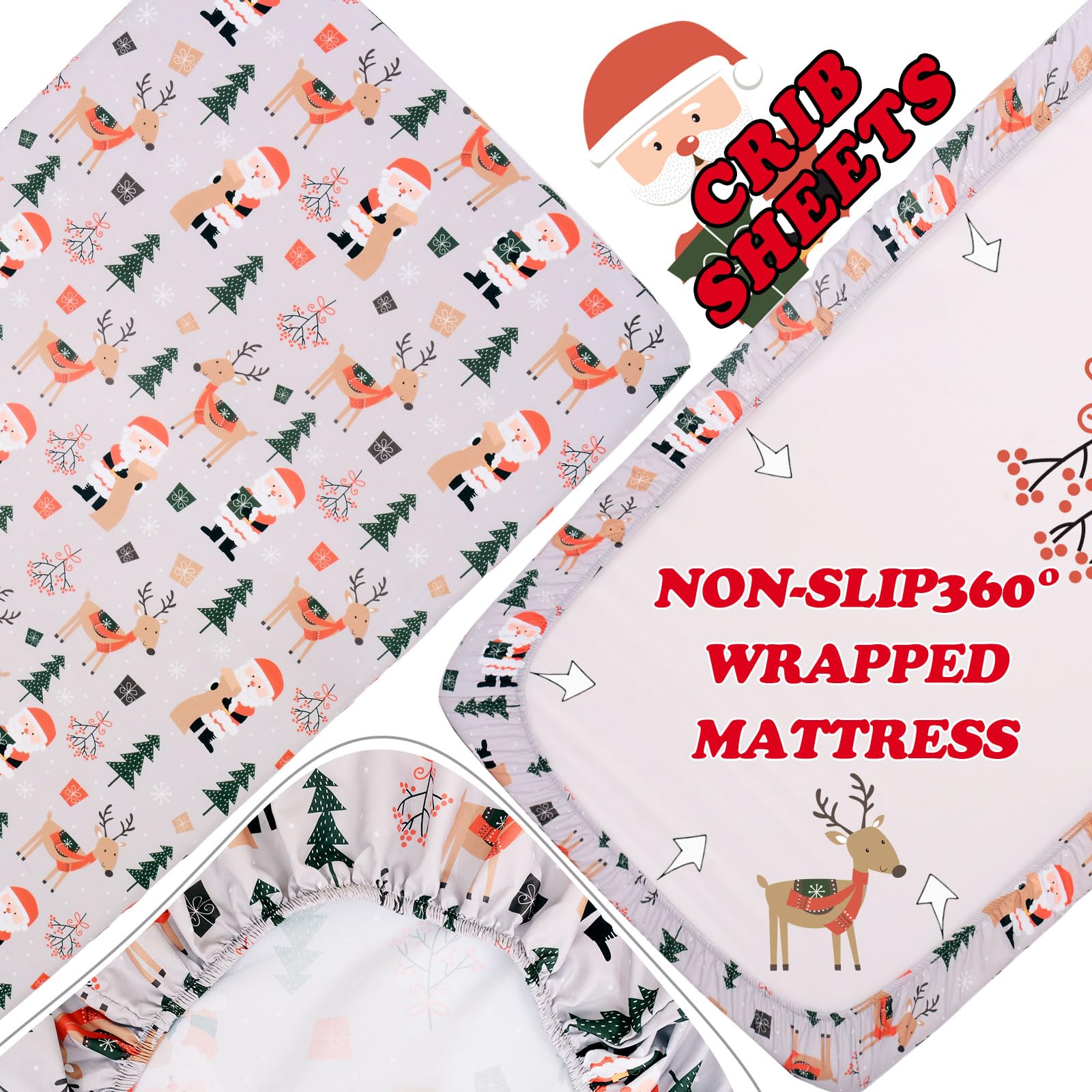 【PERFECT GIFT】The crib sheet comes with elastic bands that fit snugly to the mattress and stay smooth, making it the perfect Christmas and new year baby room decoration.Complement any nursery design.Your baby will love this fun new addition to their bedroom. It is also a perfect gift for birthdays,Thanksgiving,Christmas and other occasions.