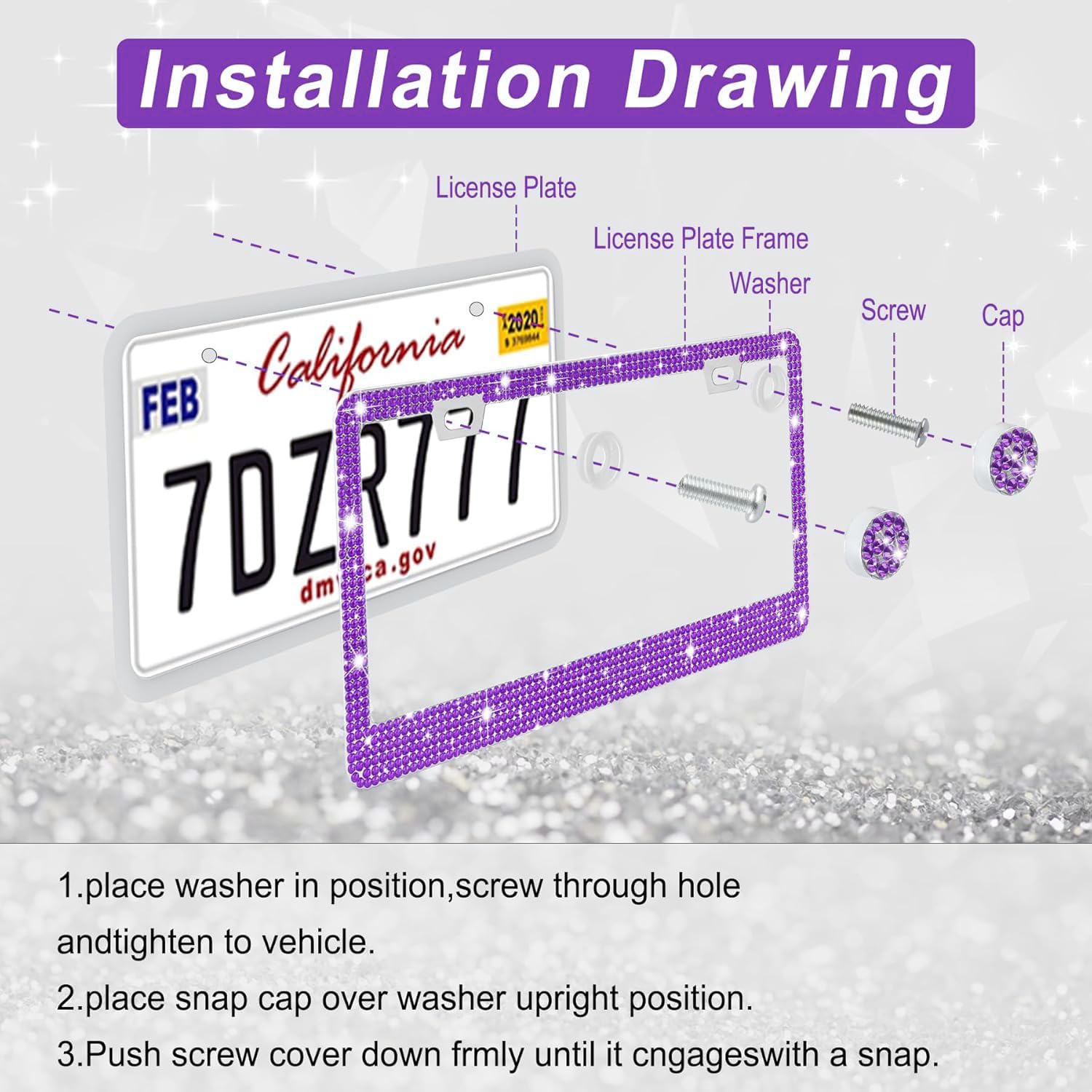 【Best Gifts】 -- Beautiful sparkling license plate frame is ideal for cars,trucks or trailers,a warm gift for friends and family on Christmas and Birthday.Your satisfaction is our top priority, if you have any questions, please contact us, we are always waiting for you here.